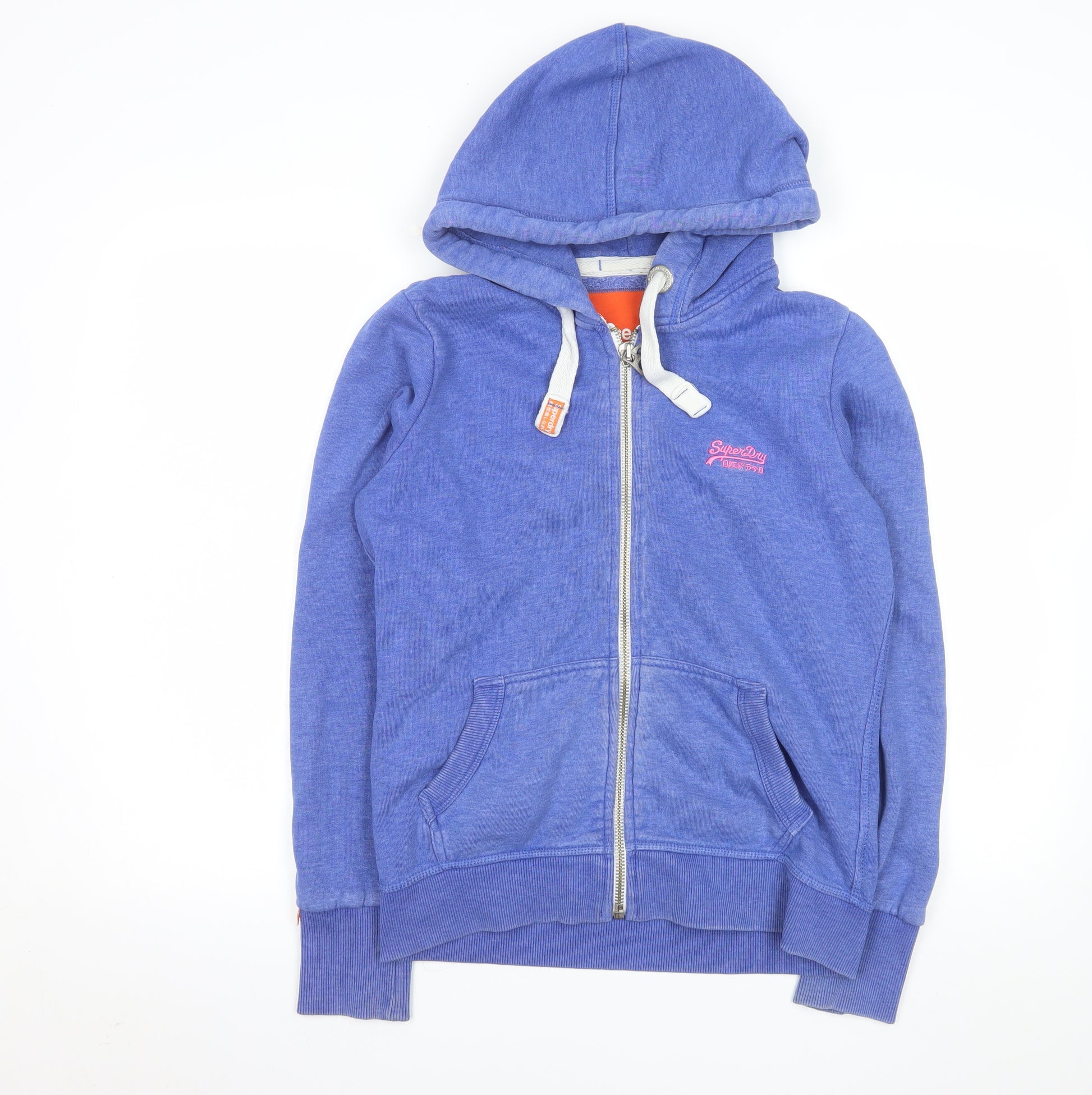 This Superdry Women’s Blue Hooded Full Zip Jacket from the Orange Label collection offers both style and comfort, making it a perfect everyday layer for cooler months. Crafted from a soft and durable cotton and polyester blend, this jacket provides warmth without sacrificing breathability. The vibrant blue tone gives it a fresh, sporty appeal, while the pink embroidered Superdry logo on the chest adds a subtle branded touch. Designed for practicality, it features two front pockets ideal for keeping your hands warm or storing small essentials, a full front zip fastening for effortless wear, and an adjustable drawstring hood to shield against the chill. The ribbed cuffs and hem offer a snug fit and help to keep in warmth. With a regular, relaxed fit and cozy jersey fabric, this jacket is an excellent choice for casual days, travelling, or outdoor activities. The piece has been gently worn and remains in excellent condition with no visible marks or defects, maintaining good colour vibrancy and structure. Its simple yet iconic design makes it easy to pair with jeans, leggings or joggers for a laid-back weekend look. Machine washable for easy care, this versatile jacket ensures both practicality and timeless appeal, embodying the quality craftsmanship that Superdry is known for. Ideal for autumn, spring or mild winter days, it’s a must-have layering essential for any wardrobe.