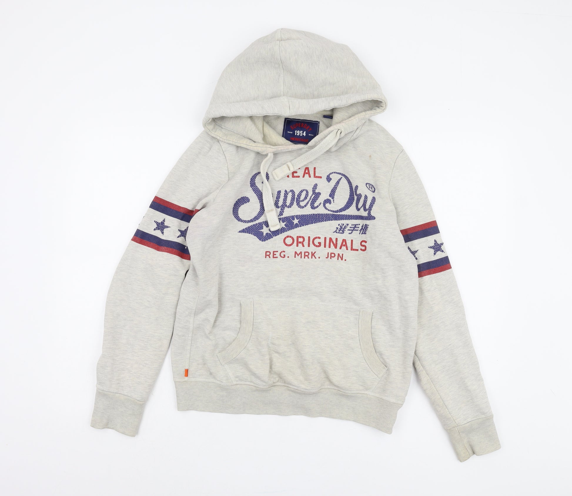 Superdry Women Grey Pullover Hoodie UK 12 with Logo Print