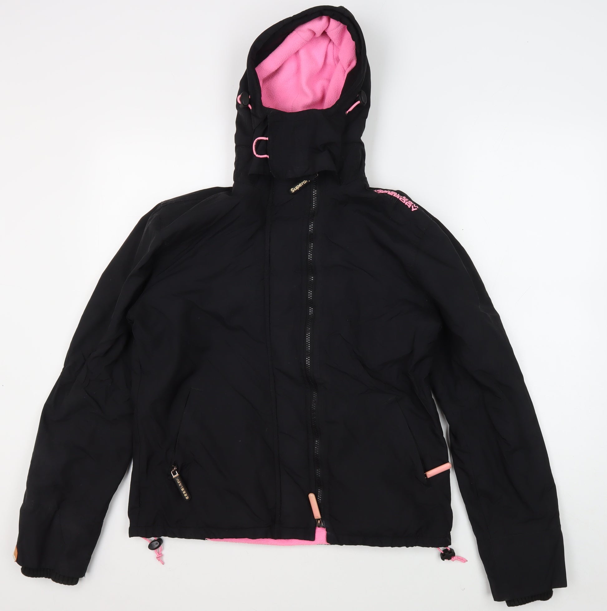 Discover practical style with this Superdry Women's Black Windbreaker Jacket, designed for a perfect fit in a size Large. Crafted from 100% nylon, this jacket is not only durable but also offers an excellent level of comfort and protection against the elements. With a machine-washable care instruction, it easily blends convenience with style. The windbreaker features a stylish black shell with a sleek logo accent, making it a versatile piece for any casual occasion. Its hooded design and full zip closure provide adjustable coverage and warmth for those chilly autumn and winter days. The jacket is complemented with practical pockets, perfect for keeping your essentials close. The lining is made from 100% polyester offering an additional layer of warmth. Ideal for women seeking a regular fit, this mid-length jacket effortlessly complements your wardrobe essentials, providing a timeless, enduring style. Embrace outdoor adventures or city strolls with this reliable outerwear staple.