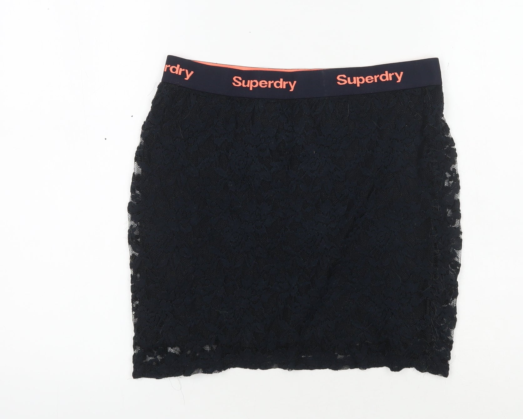 Introducing the Superdry Women's Black Lace Pencil Skirt, an elegant and versatile addition to your wardrobe. This stunning skirt is crafted with precision, featuring a high-quality lace fabric that adds a touch of sophistication. Designed to fit perfectly, the skirt boasts an elastic waistband for ultimate comfort and ease of wear. It's the perfect blend of style and functionality, suited for both casual outings and more formal occasions. With its classic black hue, this skirt promises endless styling possibilities, making it a must-have piece for any fashion-forward woman's collection. Whether paired with a sleek blouse or a casual top, it effortlessly transforms your look, offering a chic silhouette. Available in size M for a flattering fit, it's an ideal choice for any season. Elevate your style with this beautiful lace pencil skirt, combining timeless elegance with modern appeal.