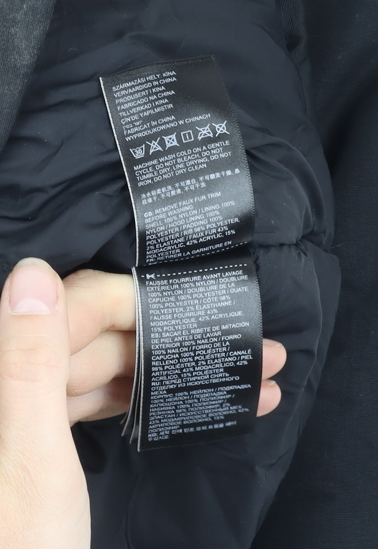 Women's Black Parka Size 14 Faux Fur Hooded Winter Coat