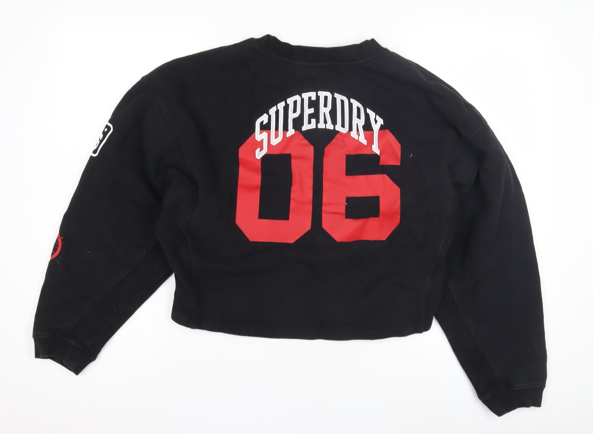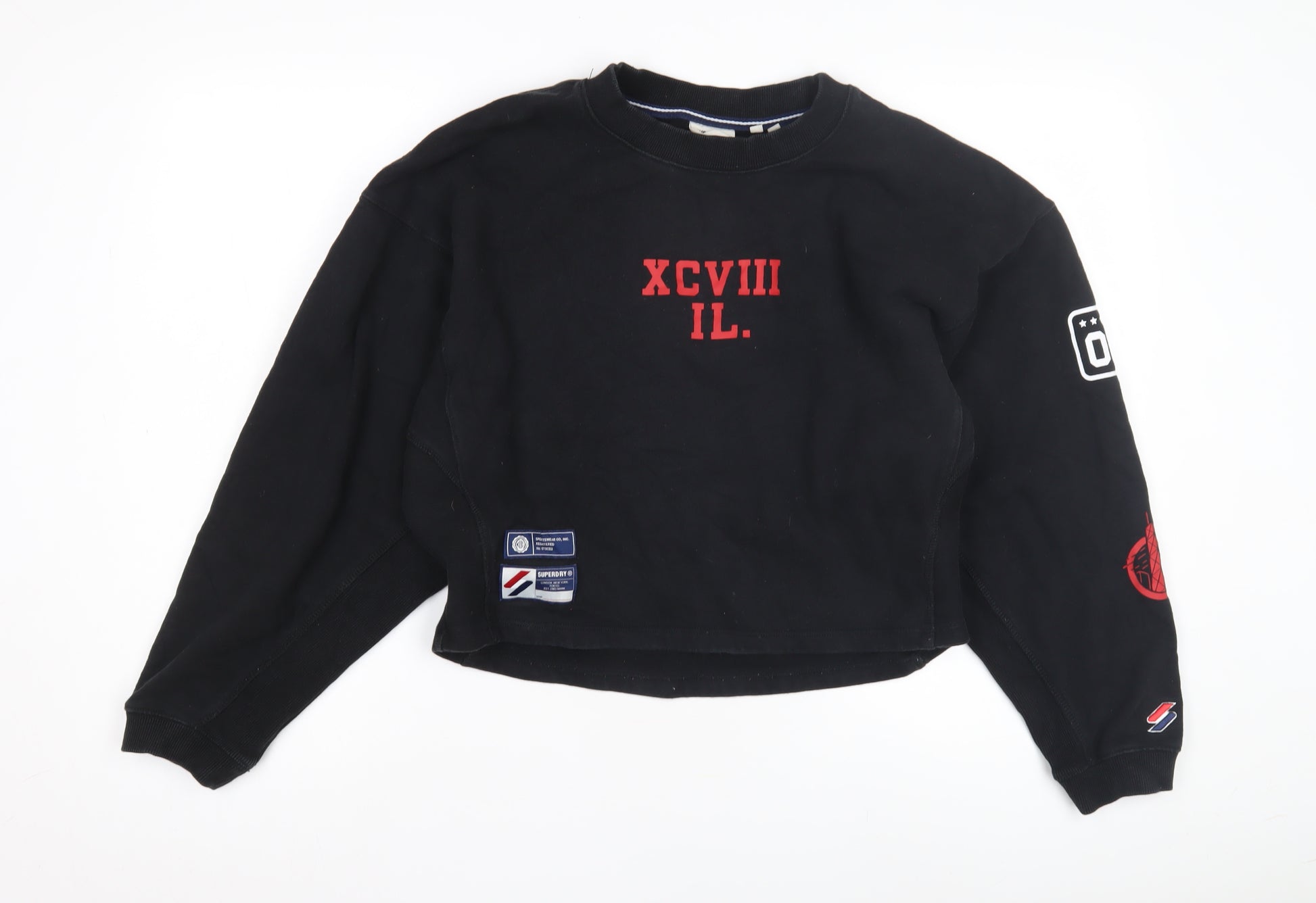 Jack Wills Women Black Size 14 Pullover Sweatshirt 100% Cotton Crew Neck
