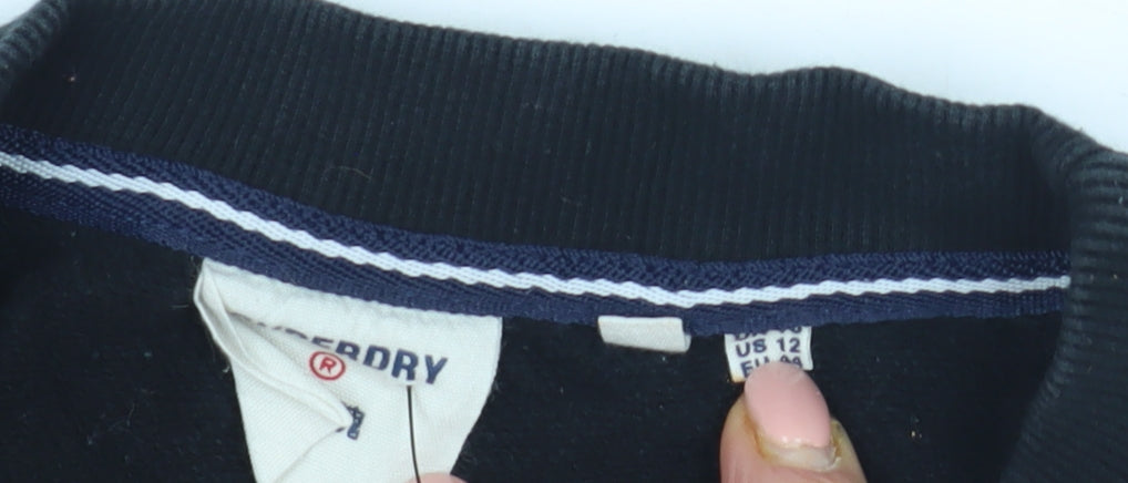 Step into casual style with this Superdry Women's Black Sweatshirt. Designed for comfort and a relaxed fit, this sweatshirt is perfect for a variety of occasions, whether you're heading out for a weekend adventure or relaxing at home. Crafted from high-quality jersey fabric, the sweatshirt features a classic crew neck and long sleeves for those cooler days.The minimalist design is highlighted with a bold logo accent on the front, adding a touch of sporty flair to your look. This piece is made primarily of cotton, offering a soft feel against the skin. Its machine washable quality ensures easy care and maintenance, making it a practical addition to your wardrobe.Perfect for all seasons, this sweatshirt pairs effortlessly with jeans or leggings, providing a versatile base for your off-duty outfits. Despite showing slight wear on the front, it remains in excellent condition, promising both style and durability.Whether you're a fan of Superdry's iconic streetwear or simply looking to expand your casual wear collection, this sweatshirt is a must-have item. Available in size 14, it's designed to provide a regular fit that flatters your silhouette without compromising on comfort. Make this Superdry sweatshirt your go-to choice for stylish, everyday ensembles.
