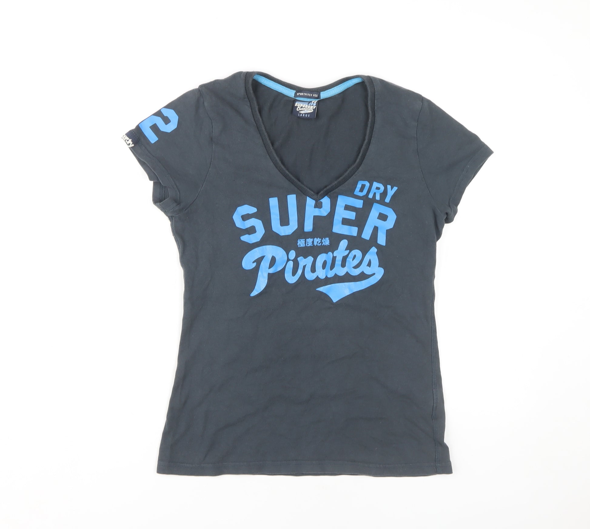 Elevate your casual wardrobe with this stylish black V-neck T-shirt from Superdry. Crafted for women, this T-shirt boasts a regular fit and is perfect for all seasons. Featuring short sleeves and a solid print accentuating the sporty vibe, it's ideal for any casual occasion.Made from 100% cotton, this jersey fabric T-shirt ensures comfort and ease of wear, while its machine-washable nature adds to the practicality. The pullover design and classic/fitted sleeve offer a sleek silhouette that pairs effortlessly with jeans or shorts.Whether you're lounging at home or heading out for a casual meet-up, this Superdry T-shirt is a versatile addition to your collection. With slight wear visible but still in excellent condition, it represents both style and comfort at a competitive price. Don't miss out on this essential piece that promises to become a staple in your wardrobe.