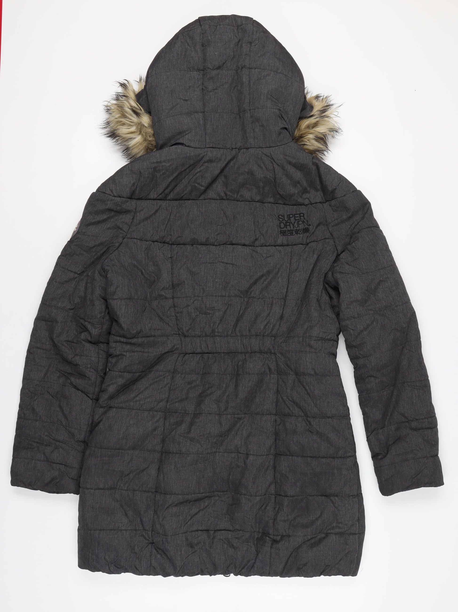 Stay warm and stylish this winter with the Superdry Women's Black XL Puffer Jacket. Crafted from a durable blend of nylon and polyester, this mid-length coat offers the ideal fusion of comfort and durability. The coat is insulated to provide maximum warmth during the colder months, while the hooded design and fur trim add a touch of elegance and extra protection against harsh weather. Featuring a full zip closure and zipped pockets, it offers practicality and style in one sleek package. Suitable for casual occasions, this jacket's sleek black colour ensures it complements almost any outfit effortlessly. The Superdry logo accent adds a subtle touch of brand prestige, making it a must-have for fashionistas who value both form and function. Machine washable and designed with a regular fit, this coat is poised to become your new winter staple, providing both aesthetic appeal and the utmost comfort.