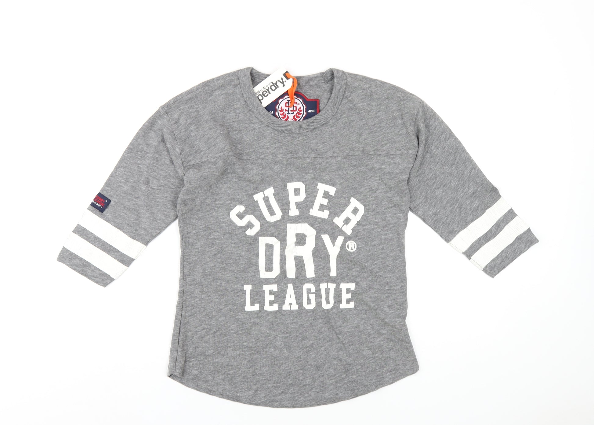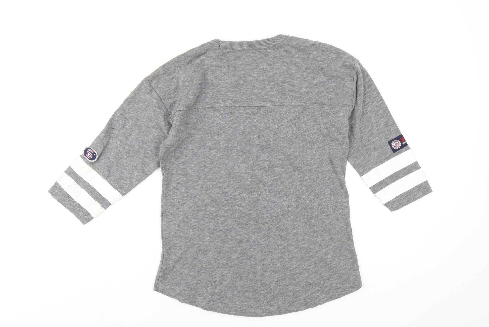 Womens Grey Cotton Basic T-Shirt Size 2XS Round Neck