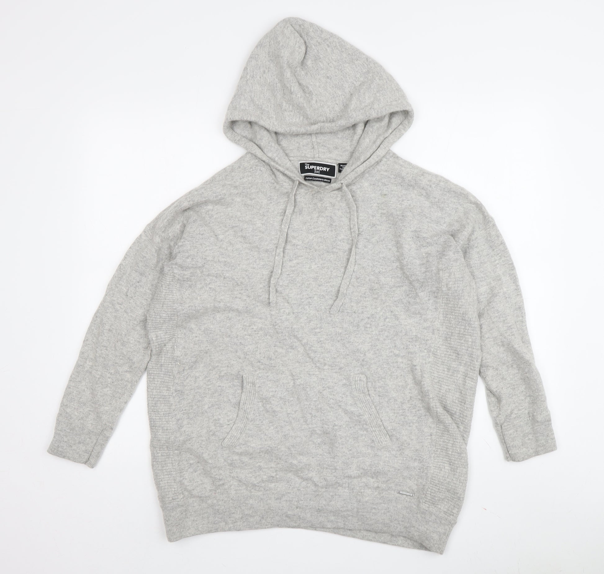 Elevate your casual wardrobe with this stylish Superdry women's grey pullover jumper. Crafted with a cozy wool and cashmere blend, this jumper offers both warmth and a soft touch, making it perfect for autumn and winter occasions. Designed with a practical hood and long sleeves, it provides extra warmth and comfort for those chilly days. The pullover style ensures easy wear, while the subtle grey colour offers versatile pairing options with various outfits. Ideal for casual occasions, this jumper is machine washable, making it a practical choice for busy lifestyles. Whether you're out for a leisurely stroll or enjoying a quiet day indoors, this Superdry jumper will keep you comfortable and stylish. Its excellent condition ensures durability, ready to become a staple in your collection of cosy wear.