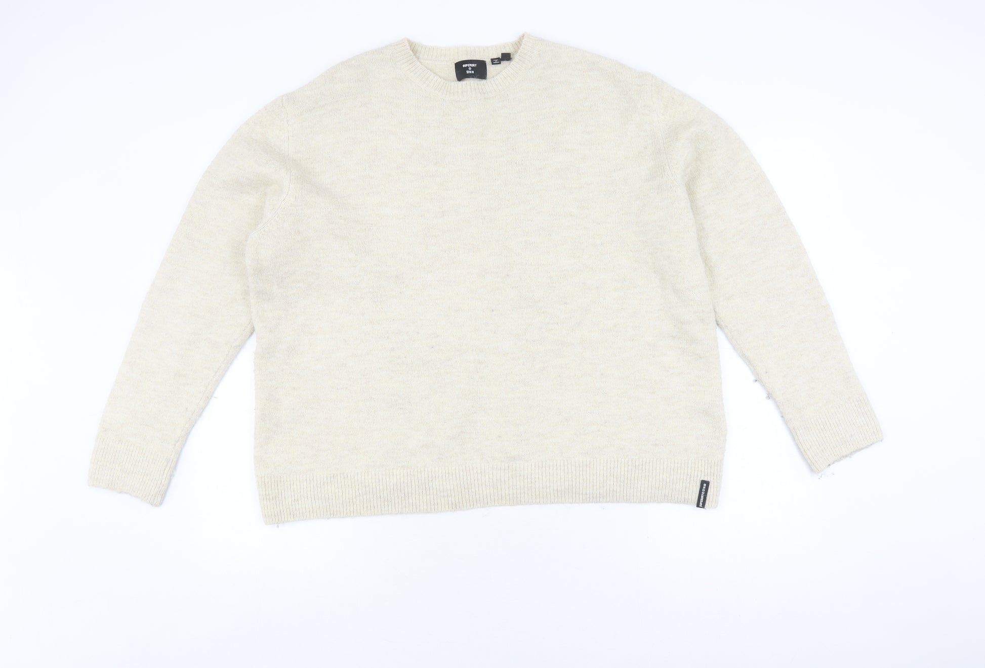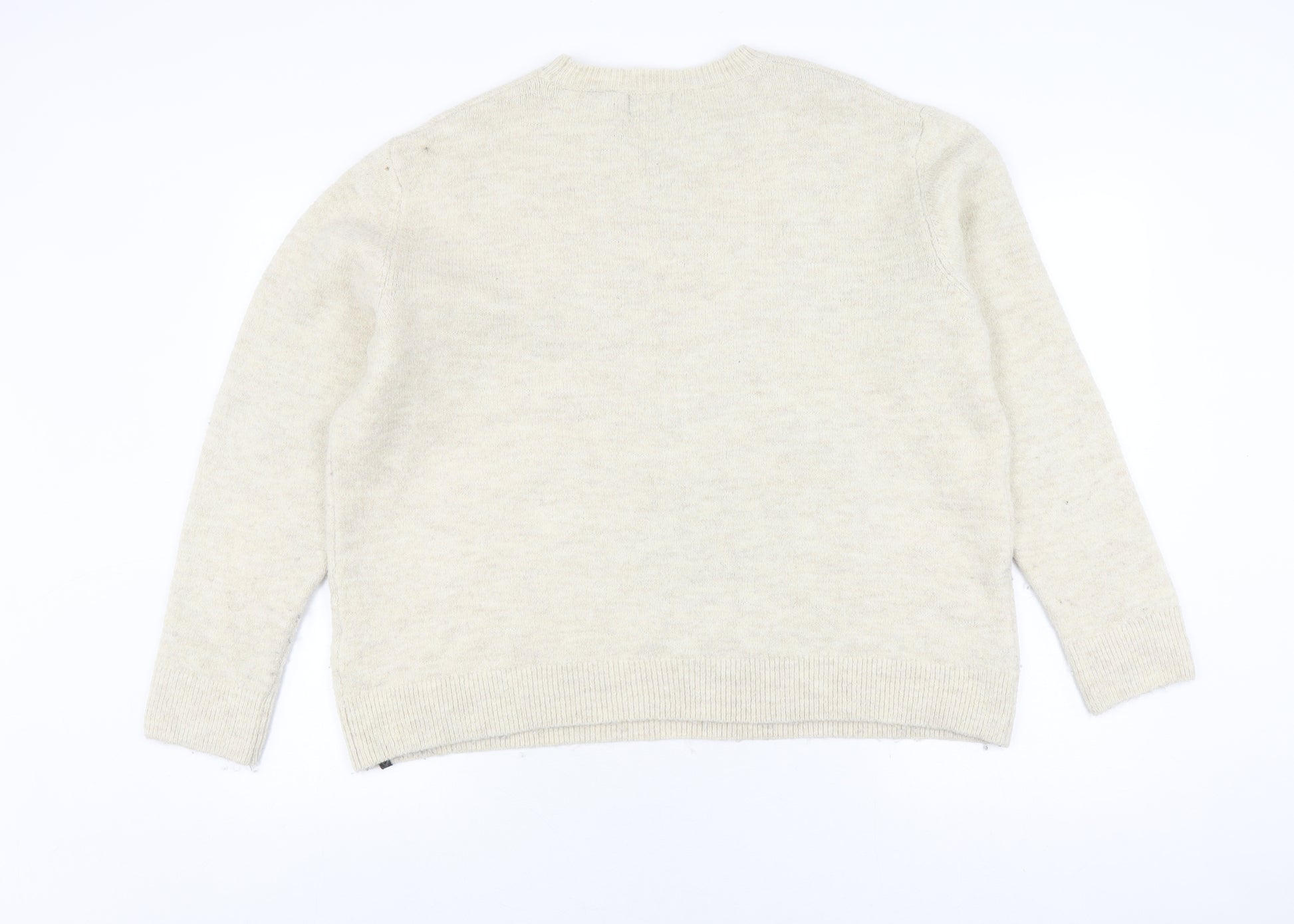 Embrace cosy style with this Superdry Women's Pullover Jumper in a versatile ivory shade, perfect for those cooler autumn and winter days. The jumper, featuring a crew neck and long sleeves, offers a regular fit that promises comfort and a casual appeal. Made predominantly from nylon and wool with added acrylic and elastane, this knit jumper provides warmth and a slight stretch for ease of movement. Its tight-knit fabric ensures durability, making it a staple piece in any wardrobe. Although previously loved, this jumper is in excellent condition, showing only slight wear, and promises enduring quality without major flaws. Whether you’re layering up for a chilly day out or lounging comfortably indoors, this Superdry jumper makes a stylish and practical choice.