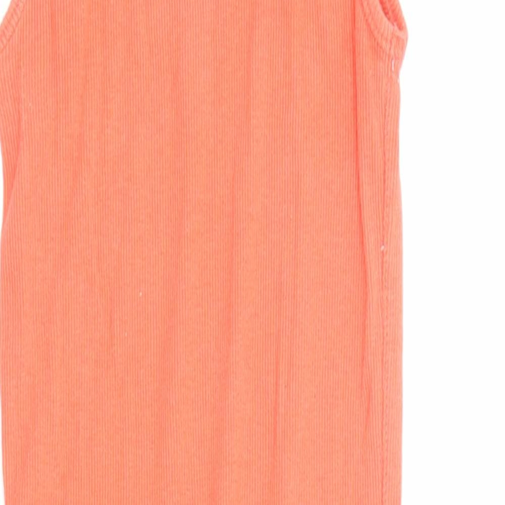 Womens Orange Cotton Bodycon Size M Scoop Neck Pullover