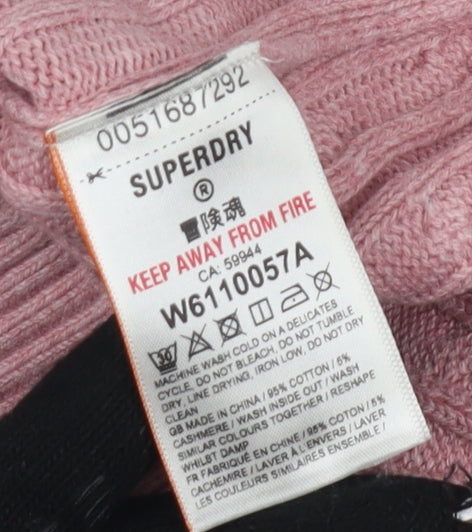 Elevate your casual wardrobe with this Superdry Women's Cable-Knit Pullover Jumper. In a charming shade of pink, this cosy piece is crafted for all-day comfort and style. Made from 95% cotton and 5% cashmere, the jumper promises warmth and a subtle touch of luxury. The regular fit ensures it flatters a variety of body shapes, while the crew neckline and cable-knit pattern give it a timeless appeal. Designed for versatile wear, this jumper is perfect for a relaxed day out or a cosy night in. The long sleeves add extra coverage, making it an essential piece for any season. Easy to care for, it's machine washable, allowing for effortless maintenance. Pair it with your favourite jeans for a laid-back look or dress it up with a statement necklace for a more polished ensemble. With its excellent condition, this piece shows minimal signs of wear, ensuring it remains a staple in your wardrobe for years to come.