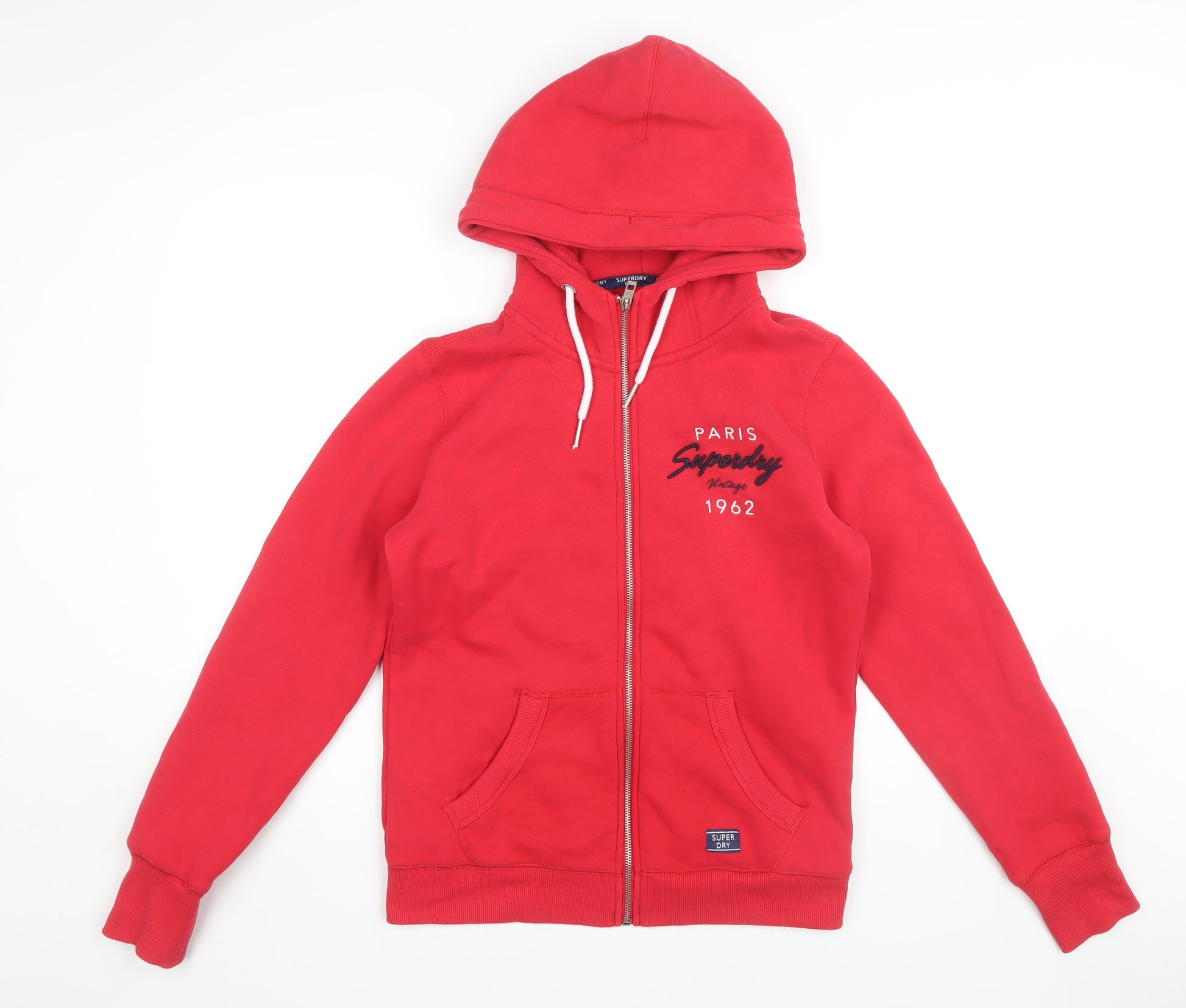 Stay warm and stylish with the Superdry Women's Red Hoodie, perfect for casual wear throughout the autumn, winter, and spring seasons. This vibrant hoodie features a full zip closure for convenience, along with a cozy hood to keep you sheltered from the elements. Crafted with a blend of 59% cotton and 41% polyester, it offers a comfy fleece fabric that feels great against your skin. The red hue and embroidered logo add a touch of Superdry's signature style. Practical features include pockets for your essentials, making it perfect for everyday wear. Whether you're heading out for a walk or lounging at home, this hoodie provides both comfort and effortless style. In excellent condition with minimal signs of wear, this hoodie is a fantastic addition to your wardrobe.