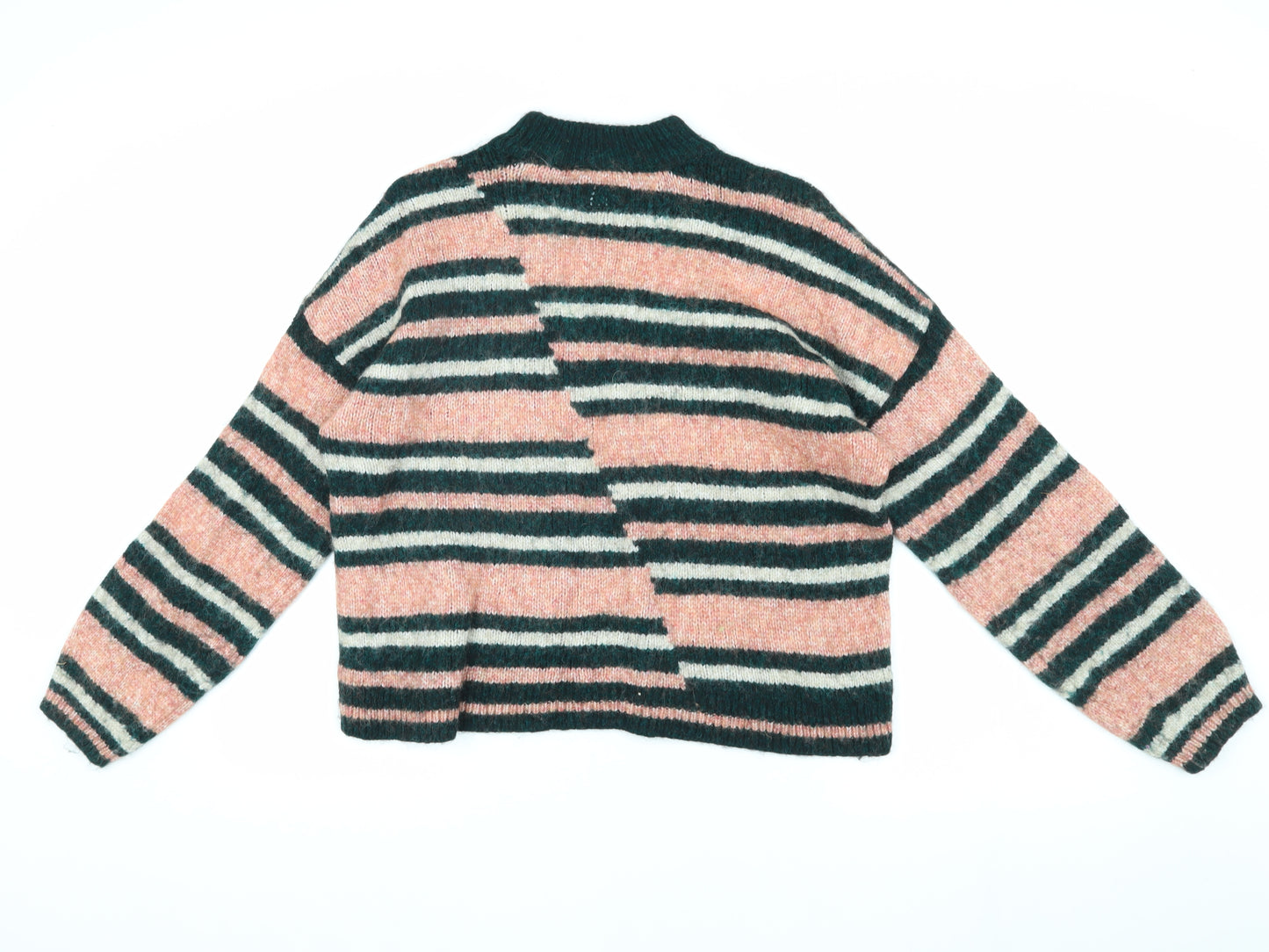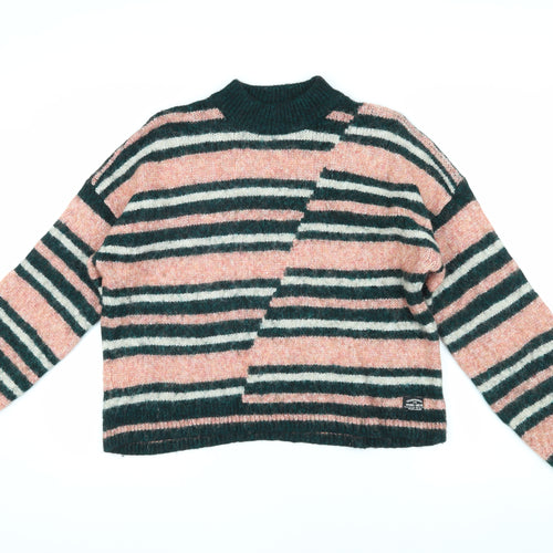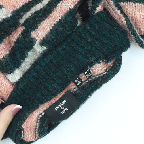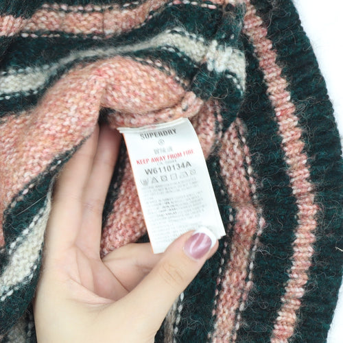 Dive into effortless style with the Superdry Women's Multicoloured Pullover. This eye-catching jumper boasts a high neck and playful striped pattern in soothing pink and green hues that are perfect for adding a pop of colour to your wardrobe. Made from a blend of wool, nylon, and mohair, this knit is perfect for keeping warm throughout the colder seasons. Ideal for casual day outs, it promises both comfort and fashion-forward appeal. Pair it with your favourite jeans or a stylish skirt for a look that's both chic and relaxed. Enjoy the retro vibe with a touch of modern sophistication.