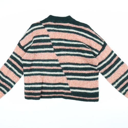 Zara Women’s Multicoloured Striped Open-Knit Hooded Pullover Jumper Size 12