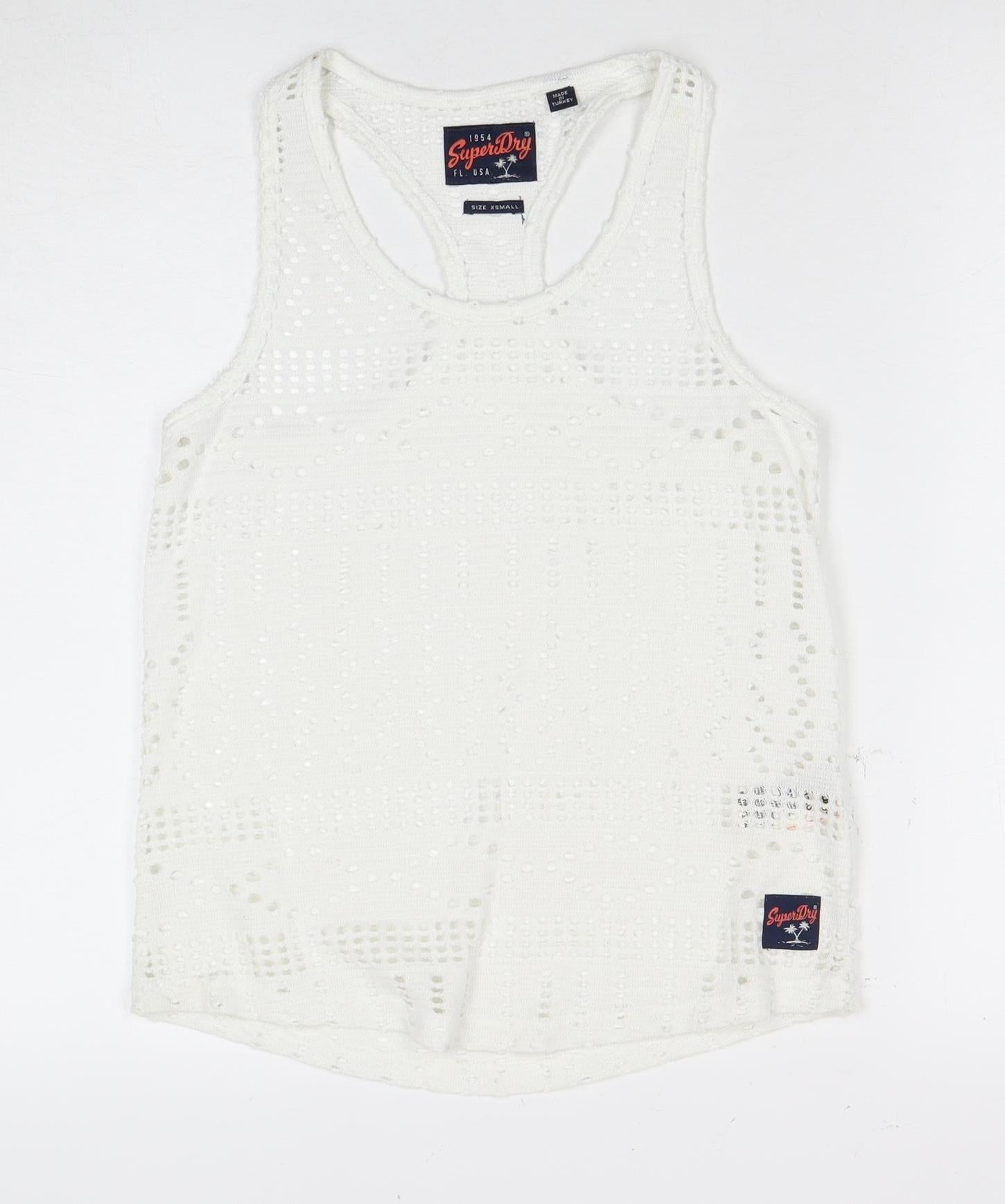 Discover the perfect mix of comfort and style with this women’s white camisole tank from SuperDry. Ideal for a casual summer look, this XS top is crafted from a lightweight knit fabric with a blend of polyester and elastane, ensuring a comfortable stretch fit that moves with you. The solid white colour makes it a versatile piece, perfect for layering or wearing on its own during the warmer months. With a racerback halter neckline, this tank adds a sporty edge to your outfit, while maintaining an effortless chic vibe. Machine washable for easy care, it promises both convenience and style. Whether you're heading out for a casual meet-up or enjoying a relaxed day at home, this SuperDry tank offers a flattering fit for any occasion.