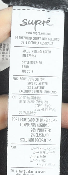 This Supré Women’s Black Denim Pencil Skirt in size 12 is a wardrobe classic that effortlessly combines comfort and style. Crafted from a quality blend of 78% cotton, 20% polyester, and 2% elastane, it offers a structured yet flexible fit that flatters your silhouette while allowing ease of movement. The sleek black denim finish provides a versatile base that can be styled up or down for any occasion. Designed in a short, straight pencil cut, this skirt features a modern zip fastening at the back for a contemporary edge and smooth finish. The stretch fabric ensures comfort whether you’re heading out for casual days, lunches, or smart-casual gatherings. Perfectly suited for spring, summer, and autumn wear, this skirt complements a variety of tops—from blouses and shirts to cropped tees and jumpers. Pair it with ankle boots, trainers, or heels for a balanced, effortlessly stylish look. Its simple black hue means it’s easy to mix and match with prints or neutrals, making it a timeless addition to your wardrobe. This piece remains in excellent pre-owned condition with light general wear and minor creasing, showing little sign of use. Whether you prefer a relaxed daytime outfit or a bold evening look, this Supré denim skirt adds a confident, fashionable touch. A great value essential for those who love stylish, comfortable everyday fashion.