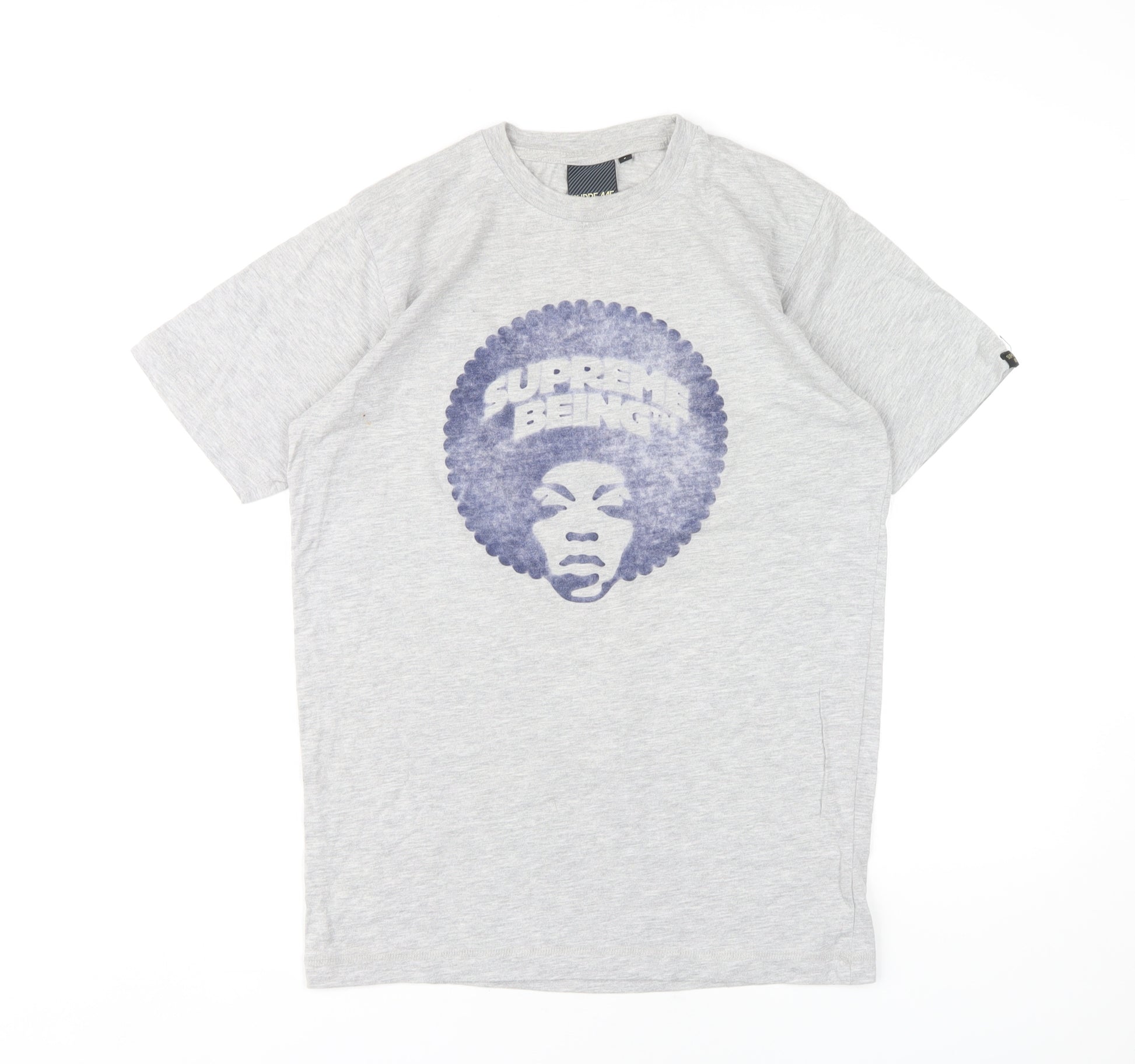 Embrace urban style and comfort with this Supreme Being T-shirt in a versatile grey hue, perfect for any casual wardrobe. Crafted for men, this tee offers a standard fit, with a minimalist crew neck and short sleeves, ensuring ease of movement for everyday wear. The T-shirt features a unique graphic print, embodying a modern artistic expression that’s sure to turn heads.Made from a durable blend of 70% cotton and 30% polyester, this jersey fabric tee promises both comfort and strength, maintaining its shape wash after wash. Ideal for all seasons, it’s breathable for summer yet easily layered under jackets or hoodies when temperatures drop. With machine washable care, maintenance is hassle-free, making it a perfect pick for busy lifestyles.The subtle logo accent adds a sophisticated touch, marking this tee as a quality Supreme Being product without overwhelming the design. Whether you’re off to a gig, a casual meet-up with friends, or simply stepping out for errands, this T-shirt fits the bill. Showcasing Supreme Being’s reputation for creative and stylish apparel, this tee is a must-have for anyone wanting to infuse their wardrobe with contemporary flair.Pre-loved yet in excellent condition, the T-shirt has been meticulously checked for any signs of wear and found to be in top-notch shape with no visible damage or stains. This is a great opportunity to own a premium piece of clothing at an attractive price, adding style and substance to your everyday look.