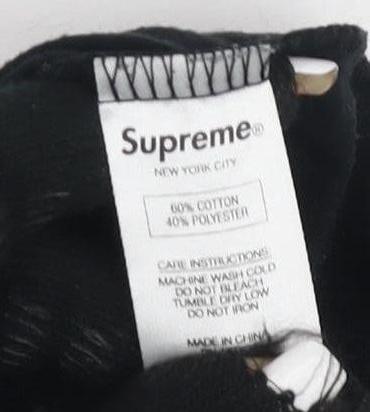 Introducing a Supreme Men's T-Shirt in a classic solid black colour, perfect for various casual occasions. This t-shirt is a collaboration featuring the iconic White Castle logo, providing a unique and stylish look. Crafted for comfort and durability, the shirt is made from a blend of 60% cotton and 40% polyester, ensuring a soft and breathable fabric. It's designed with a crew neck and short sleeves, making it a versatile piece for any wardrobe. Despite showing very minor wear, it's in excellent condition, ready for your collection. Easy to care for, this t-shirt is machine washable for convenience. In a size L, it offers a regular fit suitable for many shapes. Whether you're a Supreme collector or just looking for a statement piece, this t-shirt combines the best of comfort, style and streetwear appeal. Don't miss the chance to own a part of this unique collaboration.
