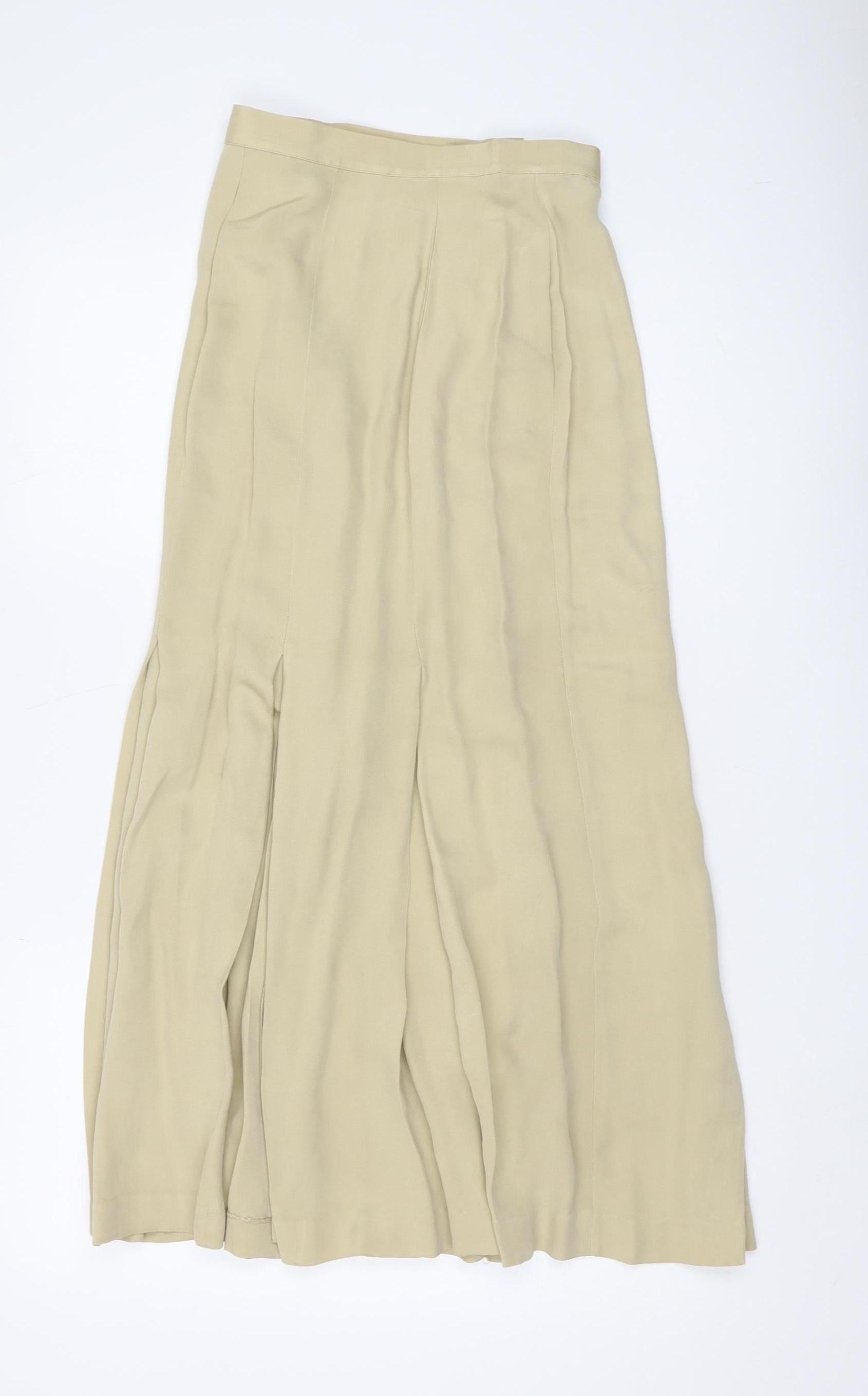 Women's Beige Pleated Silk Long Skirt, Size 6