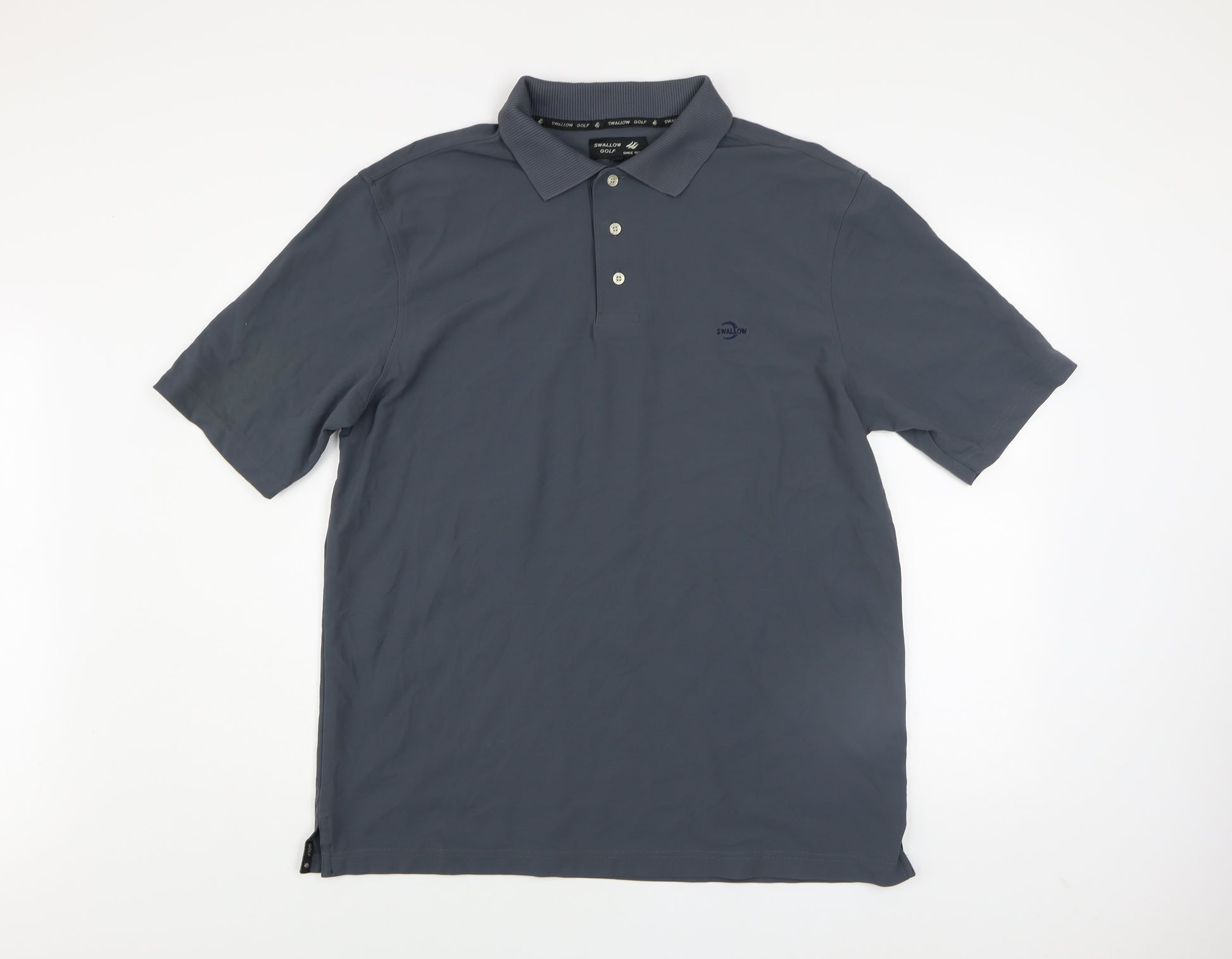 Elevate your sportswear collection with this premium Swallow Golf men’s polo shirt in classic grey, designed for golfers and active lifestyles alike. Crafted from 100% nylon, this lightweight and breathable top offers unparalleled comfort and mobility whether on the golf course, at the driving range, or during casual outdoor activities. The collared neckline and three-button placket provide a timeless and tailored aesthetic, while the subtle Swallow Golf logo on the chest adds refined branding. The nylon fabric ensures moisture-wicking performance, keeping you cool and dry during play. Its woven construction delivers durability while maintaining a soft and flexible fit suitable for extended wear. With a regular fit silhouette, short sleeves, and a button-down collar style, this piece strikes the perfect balance between smart and sporty. The grey solid colour makes it versatile and easy to pair with chinos, shorts, or golf trousers for both leisure and professional environments. Ideal for spring, summer, and autumn wear, this activewear top provides high-function comfort for golf sessions, training, or general sports use. Finished with classic button accents and a neat hemline, it offers effortless style without sacrificing practicality. The condition is excellent, showing only minimal light wear, ensuring a quality addition to your wardrobe at an attractive price point. Perfect for those seeking a reliable, smart, and comfortable activewear polo, this Swallow Golf shirt exemplifies understated athletic sophistication. Add it to your collection for dependable performance and timeless style wherever your game takes you.