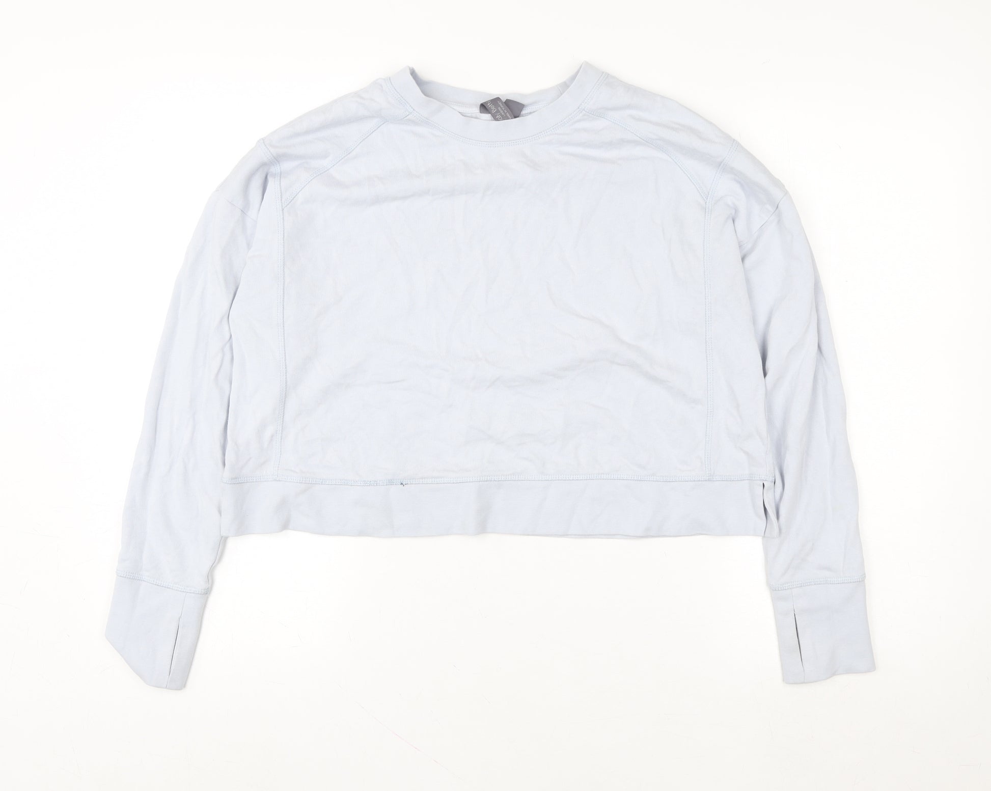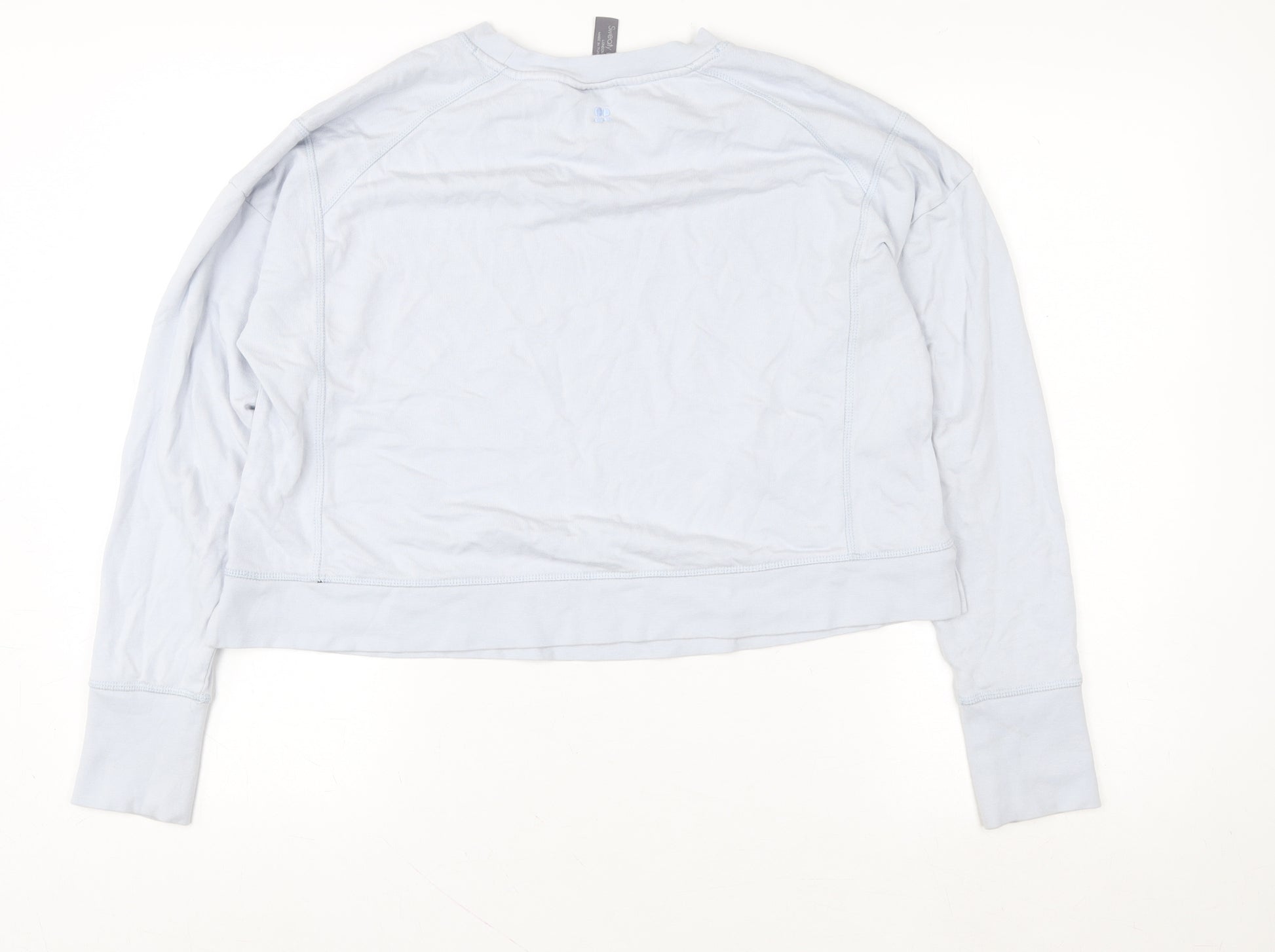 Step into effortless comfort and modern simplicity with this Sweaty Betty women’s light blue pullover sweatshirt. Designed for relaxed everyday wear, this elevated basic combines the quality you expect from Sweaty Betty with a versatile, minimal aesthetic perfect for layering. Its soft, midweight material ensures comfort through every season, making it the ideal choice for post-workout errands, yoga warmups, or simply lounging at home. The crew neckline and long raglan sleeves offer a flattering silhouette with a casual drape, while the cropped hem brings a modern edge. The light blue colour pairs beautifully with leggings, joggers, or denim, fitting seamlessly into any activewear or casual wardrobe. Crafted in Turkey from premium, breathable materials that reflect Sweaty Betty’s commitment to style and performance, this sweatshirt ensures durability and lasting softness with each wear. This piece is in excellent pre-owned condition, showing minimal signs of gentle wear and maintaining strong colour and texture integrity. Whether it’s a brisk morning stroll, a casual brunch, or weekend downtime, this sweatshirt adds effortless style and comfort to your day. For those who love functional, high-quality basics that never go out of fashion, this Sweaty Betty sweatshirt is a versatile must-have addition to your collection. Pair it with your favourite leggings for the gym or with jeans for a relaxed chic look that’s as easy as it is stylish.