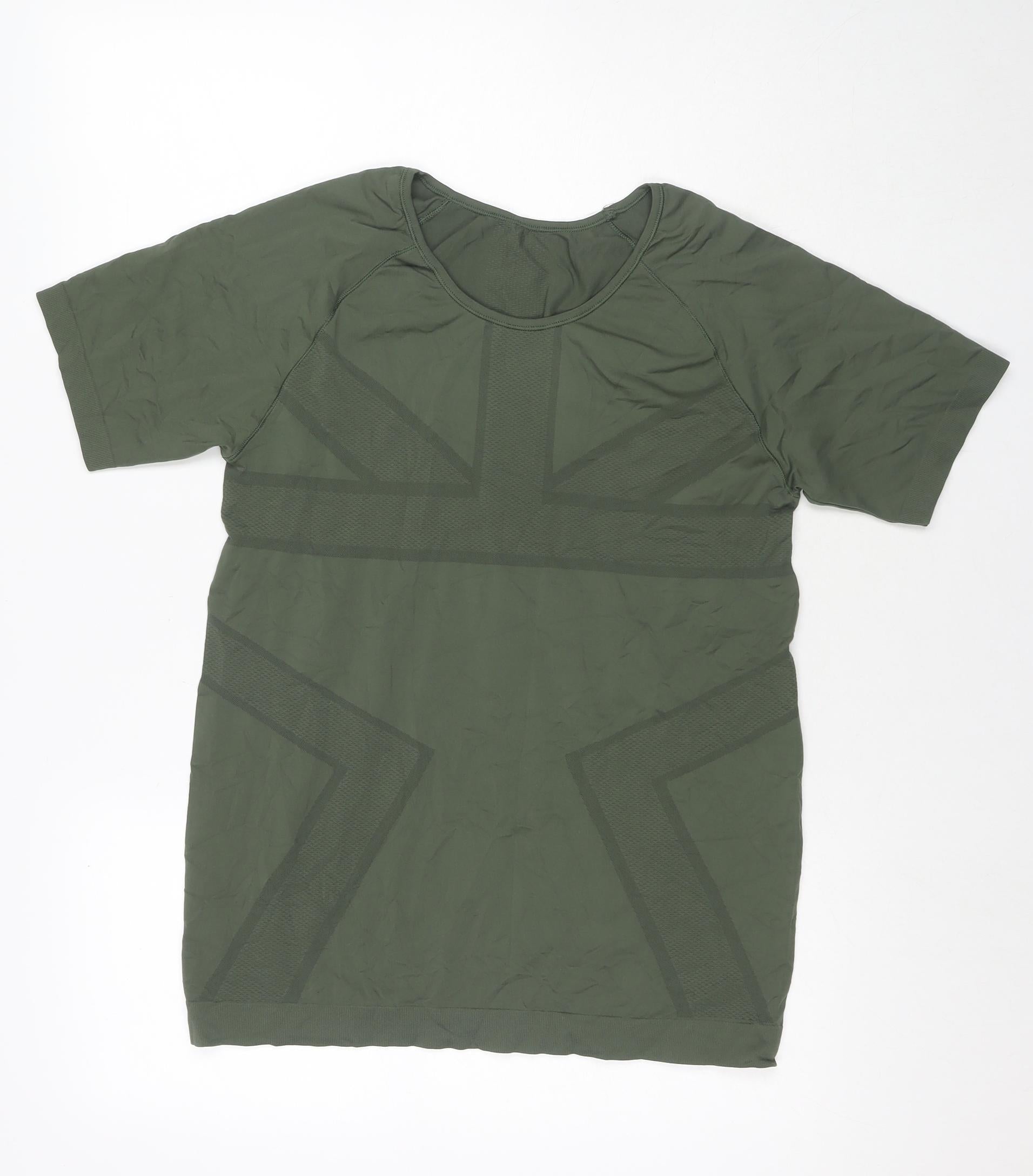 Womens Green Polyamide Basic T-Shirt Size L Round Neck Pullover