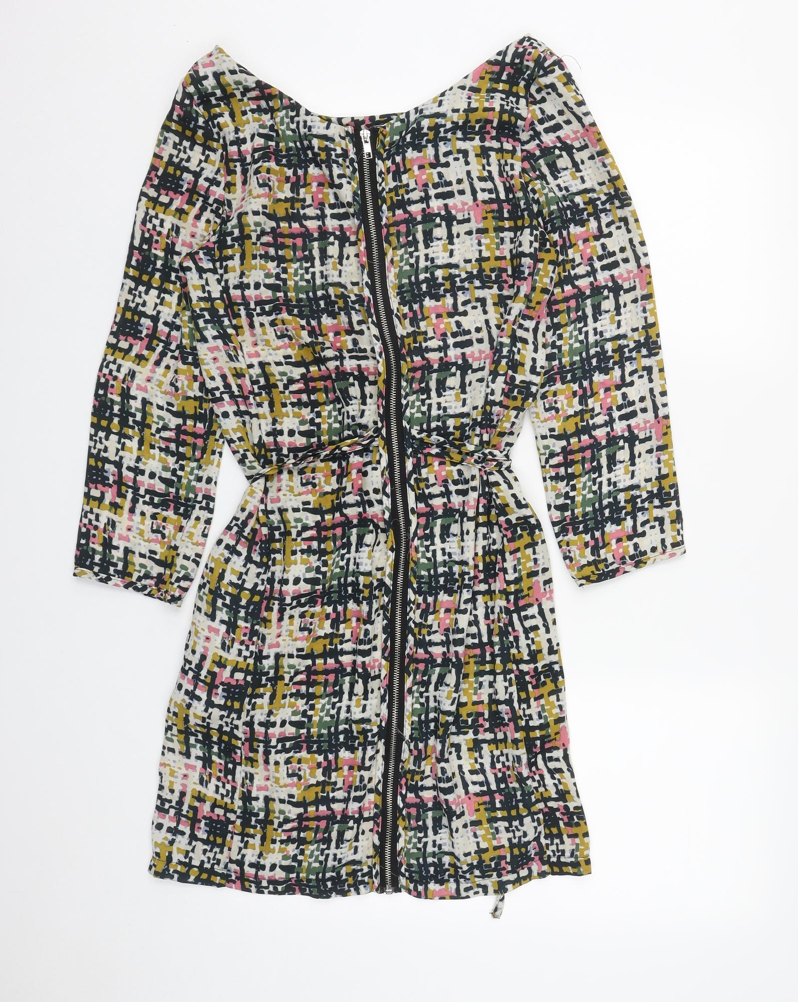Womens Multicoloured Geometric Polyester A-Line Size S Scoop Neck Zip