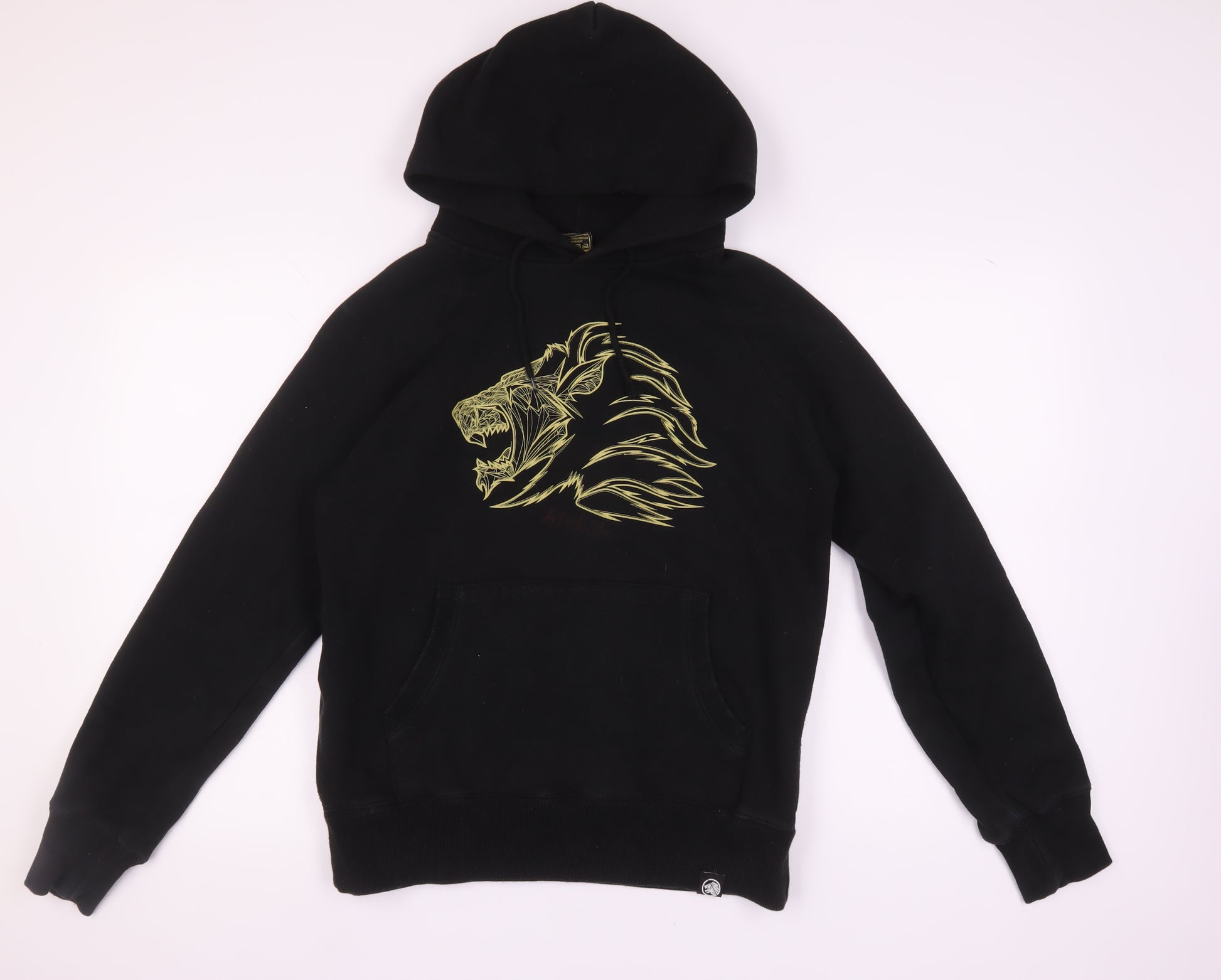 Step up your style game with this Syndicate Original Men's Hoodie, featuring a striking animal graphic print. Crafted for comfort and designed to make a statement, this black pullover hoodie is perfect for the modern man. Made from a high-quality blend of 80% cotton and 20% polyester, it promises both warmth and durability, effectively making it your go-to choice for the autumn and winter seasons. The fleece fabric type provides an added layer of coziness, ensuring you feel snug no matter the weather.With practical features like a drawstring hood and handy front pockets, this hoodie offers functionality alongside its style. The regular fit and crew neck design add to its casual appeal, while the long sleeves keep you comfortably covered. Ideal for those relaxed weekends or casual outings, this hoodie perfectly captures the essence of laid-back fashion.Whether you're dressing for a day out with friends or just lounging at home, this hoodie offers versatility in both look and feel. Its machine washable care ensures it's as easy to maintain as it is to wear, keeping it looking great with minimal effort. Slight signs of wear add a touch of character without affecting the overall excellent condition, ensuring that you're getting great value.Don this hoodie and let the bold feline-inspired design set you apart. Experience the unique blend of comfort, style, and practicality synonymous with Syndicate Original. Add this essential piece to your wardrobe and enjoy a hoodie that not only meets but exceeds your everyday wear expectations.