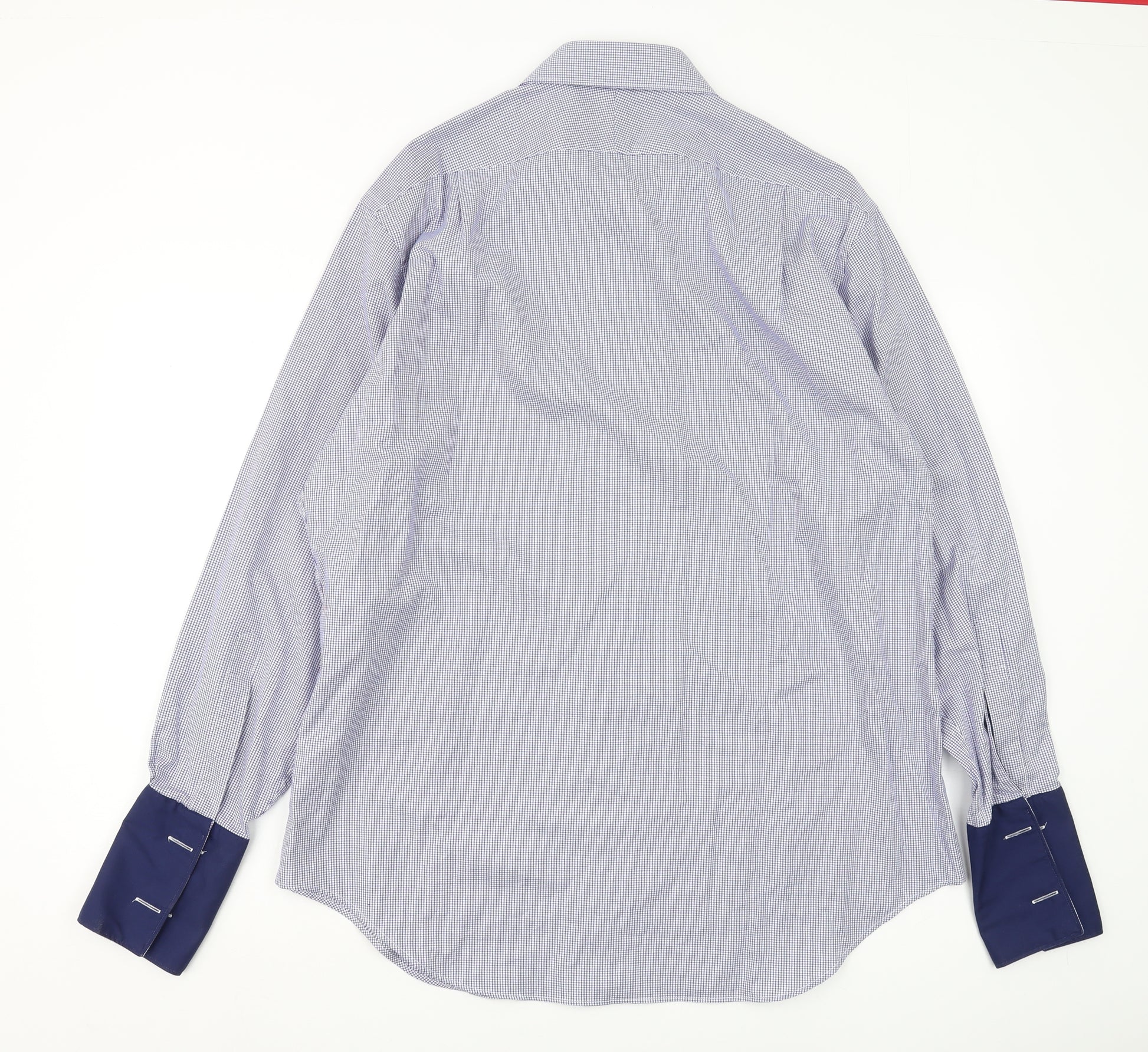 Elevate your wardrobe with this sophisticated T.M. Lewin men's shirt, expertly crafted from the finest two-fold cotton. This blue check shirt is perfect for both casual and business settings. Designed for the modern man, it features a regular fit, long sleeves, and a classic point collar, offering a timeless look that blends seamlessly with any ensemble. The pure cotton material ensures comfort all day long, while the durable stitched construction makes it a reliable addition to your collection. Its machine washable fabric means easy maintenance, keeping your shirt looking sharp wear after wear. Suitable for all seasons, this versatile piece can be paired with your favourite jeans or tailored trousers for a stylish finish. Although pre-loved and exhibiting some minor creases, the shirt remains in excellent condition with no visible tags. A must-have for any discerning gentleman, this T.M. Lewin shirt promises to deliver quality and style for any occasion. Purchase this classic piece today to enhance your wardrobe with elegance and ease.