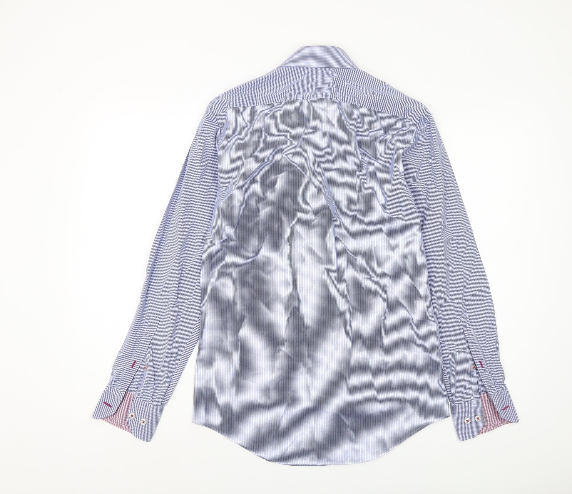 Discover the elegance and superior craftsmanship of the T.M. Lewin Men's Slim Fit Blue Check Shirt. Tailored to the highest standards, this shirt is the epitome of sophistication and style, making it the perfect addition to any man’s wardrobe. Whether you're updating your business attire or seeking a classic piece for smart casual events, this shirt offers versatility and comfort. Made from 100% two-fold cotton, it ensures breathability and softness, allowing you to move with ease throughout your day. The blue check pattern brings a classic aesthetic that is effortlessly stylish and suitable for all seasons. Featuring a long sleeve design with a button-up closure, this piece is both practical and sleek. The super fitted cut enhances your silhouette while providing a modern edge, and the collared neckline adds a touch of formality when paired with a tie or left open. Machine washable for your convenience, this shirt is easy to care for and maintain its crisp look. The button accents and point collar style blend practicality with elegance, making this shirt suitable for both business meetings and casual outings. Embrace a piece that's not only fashionable but also crafted to withstand the test of time and trends. Elevate your wardrobe with a shirt that's not just clothing but a statement of class and refinement.