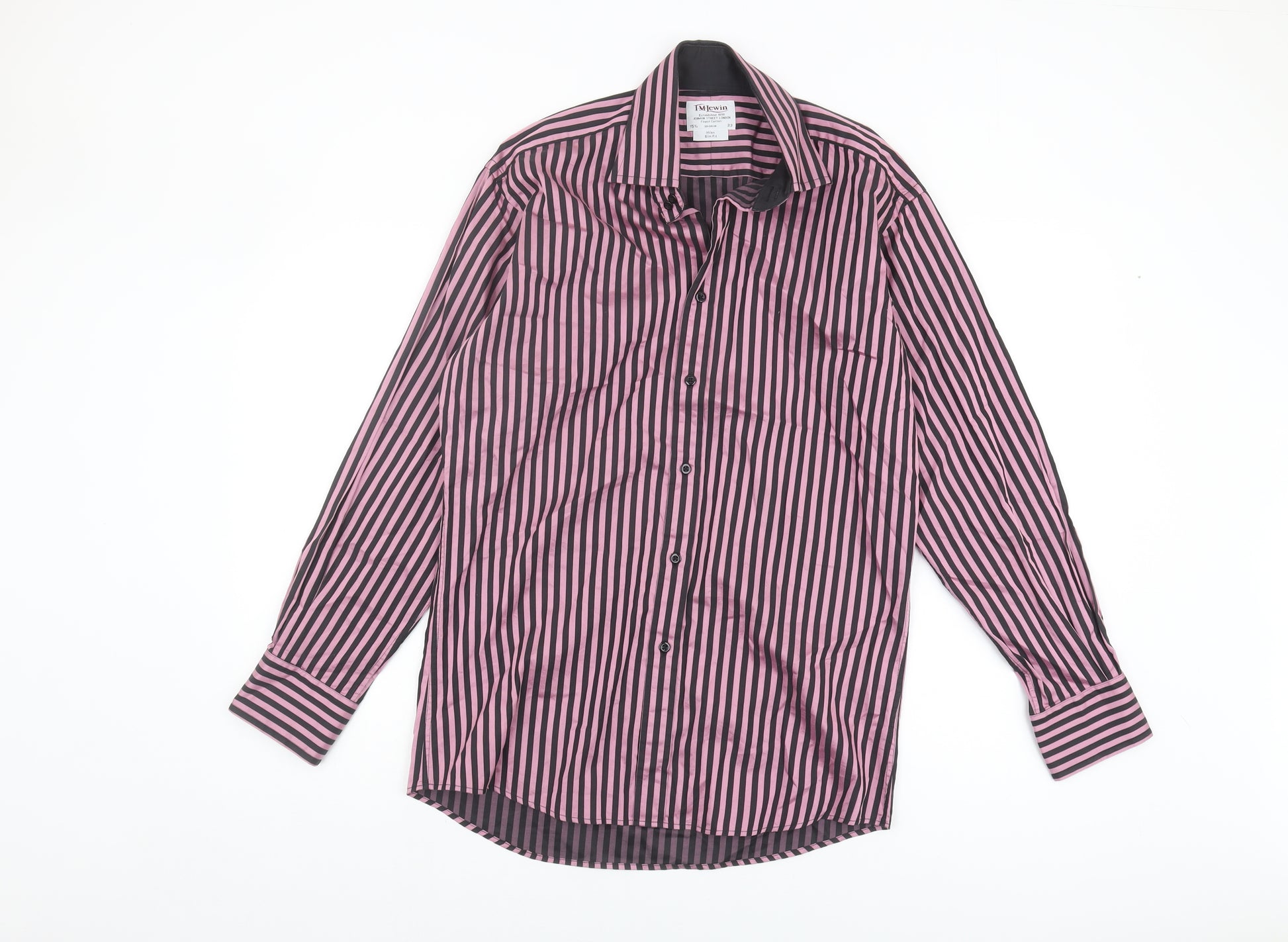 Enhance your wardrobe with this stylish T.M.Lewin shirt, designed in a striking pink and black striped pattern that exudes sophistication. Crafted from the finest cotton, this slim fit shirt offers both comfort and elegance, making it an ideal choice for various occasions. Whether you're dressing up for a business meeting or enjoying a casual day out, its versatile design suits all settings. The long sleeves and point collared neckline add a touch of classic charm, while the button-up closure ensures a secure fit. Perfect for men who appreciate quality and timeless style. Maintain its pristine condition with easy machine wash care. Upgrade your attire with this T.M.Lewin shirt and make a lasting impression.