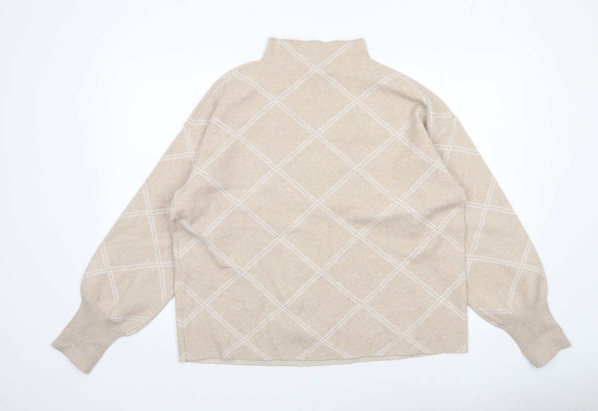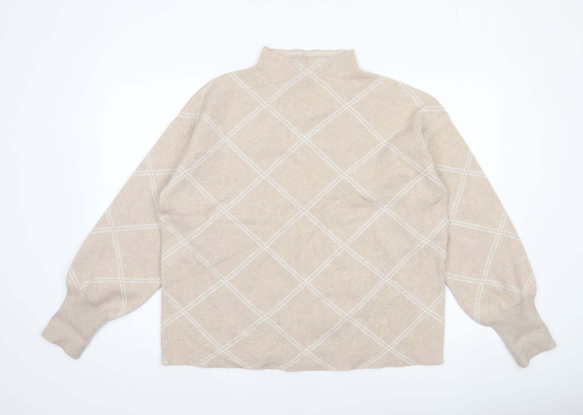 Women Beige Argyle Mock Neck Long Sleeve Pullover Jumper XL
