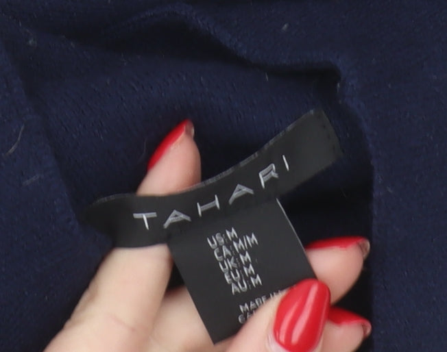 Discover a blend of style and comfort with this Tahari women's jumper. Crafted from a luxurious mix of viscose, polyester, and nylon, this knitted top offers exceptional softness and durability. Featuring a chic high neck and long sleeves, its classic pullover style is enhanced by a striking blue and white striped pattern. Designed for casual occasions, this medium-sized jumper is perfect for autumn and winter wear. The regular fit ensures a comfortable and flattering silhouette. Easy to care for, it's machine washable for your convenience. Whether you're heading out for a casual day in town or lounging at home, this Tahari jumper is a versatile addition to any wardrobe.