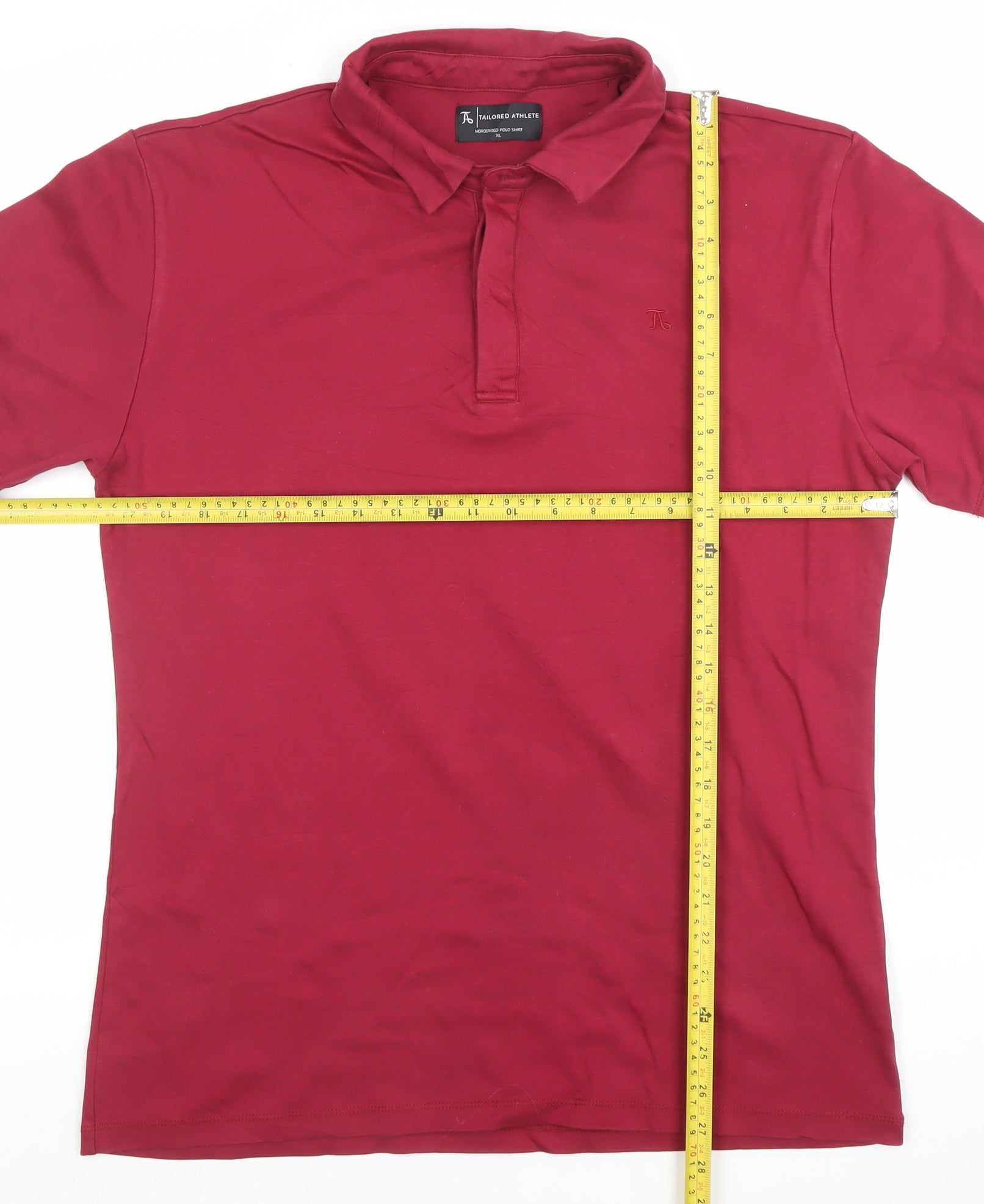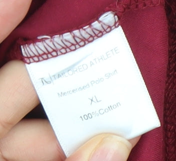 This Tailored Athlete mercerised polo shirt in rich red delivers a blend of athletic style and sophisticated comfort. Expertly crafted from 100% cotton, the fabric is mercerised for a smooth, premium finish that enhances colour vibrancy and durability. Designed with an athletic fit, it contours neatly to the body while allowing unrestricted movement, making it ideal for both casual wear and active lifestyles. The soft jersey construction ensures breathability and a lightweight feel, perfect for warmer months or layered looks through spring and autumn.Featuring a traditional collared neckline with a button placket, this polo offers a refined yet relaxed aesthetic suitable for multiple occasions—from weekend outings and social events to smart-casual workplaces or the golf course. The embroidered logo detail at the chest subtly elevates the look, giving it distinctive brand appeal without being overstated. Short sleeves keep the silhouette timeless and versatile, while the solid red hue makes for effortless pairing with chinos, denim, or tailored shorts. The construction quality and mercerised cotton lend this piece both style and resilience, ensuring it retains its colour and structure over time.In excellent pre-owned condition with minimal signs of previous use, this polo provides value and high-end comfort for the modern man seeking smart-casual versatility. Machine washable for easy care, it’s a practical and stylish addition to any wardrobe. The Tailored Athlete red mercerised polo is a wardrobe essential that combines luxury fabric and functional design, ensuring you look sharp without compromising comfort or performance.