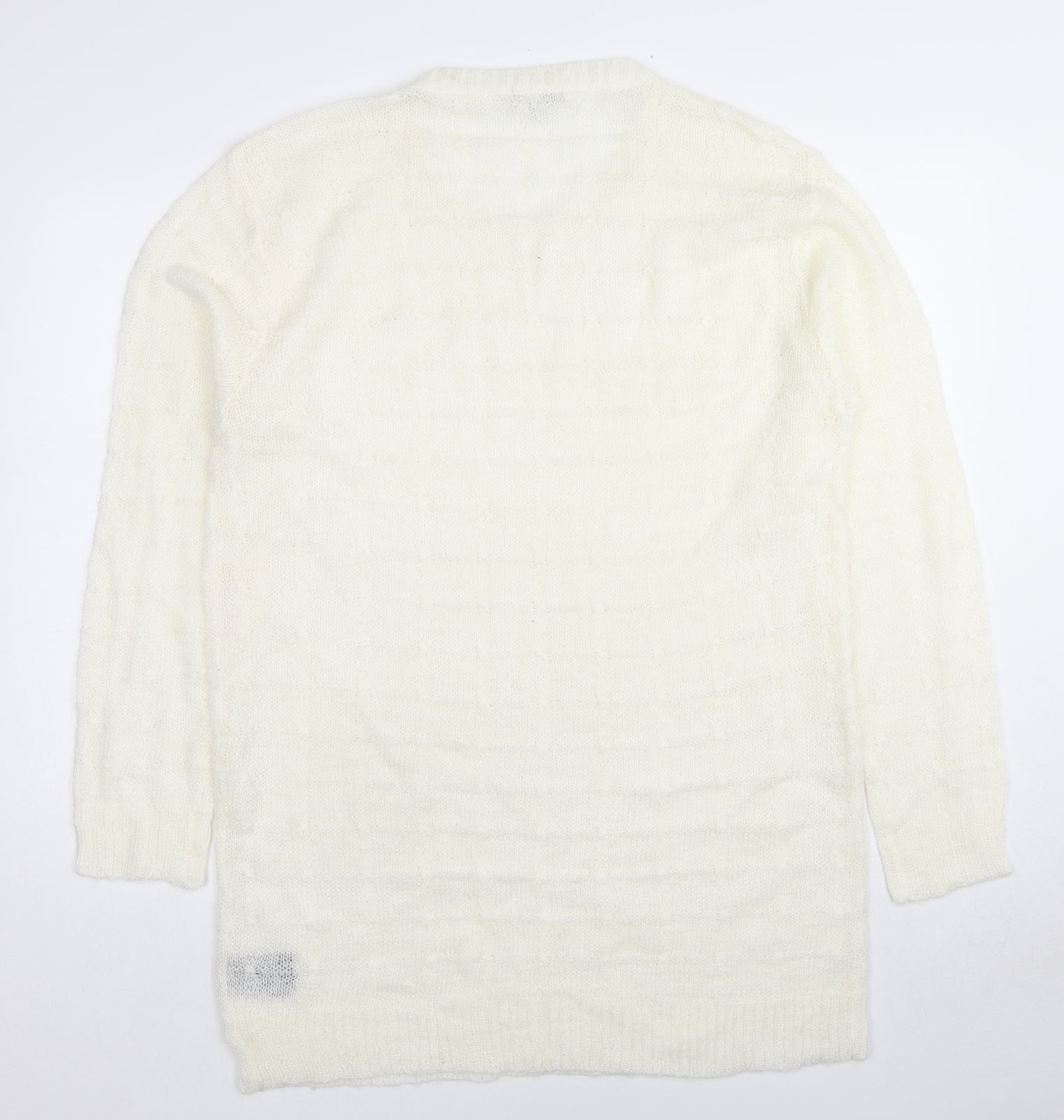 Womens White Round Neck Acrylic Pullover Jumper Size 3XL
