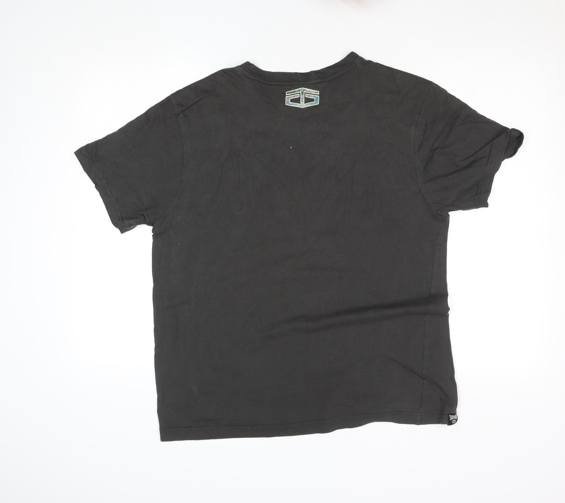 This Tapout men's black T-shirt offers a perfect combination of comfort, durability and standout street style. Crafted from 100% cotton jersey, it provides a soft, breathable feel ideal for casual wear, gym sessions, or everyday styling. The lightweight fabric makes it suitable for year-round use, especially during warmer months. The front features a bold graphic Tapout logo across the chest in a camouflage-style print, giving the shirt its distinctive sporty edge. Designed with a classic crew neckline and short sleeves, this tee delivers a relaxed yet athletic fit that complements most body types. The neck tape includes Tapout’s signature slogan ‘Break From The Pack,’ adding a small branded touch on the inside. This T-shirt perfectly balances function and fashion — whether paired with jeans, joggers, or workout shorts, it fits seamlessly into any man’s wardrobe. Its breathable cotton construction keeps you cool and comfortable, while the durable print ensures lasting wear even after multiple washes. The top shows very minor signs of previous use but remains in very good overall condition with no visible flaws or damage. Machine washable for easy care, this Tapout tee is an excellent value option for fans of activewear-inspired fashion or MMA brand enthusiasts. A great everyday staple for anyone who appreciates bold branding and reliable quality. Ideal for casual outings, gym training, or relaxed weekend wear, this tee reflects Tapout’s iconic commitment to energy, power, and individuality. Pick it up today for a dependable, stylish addition to your casual wardrobe.