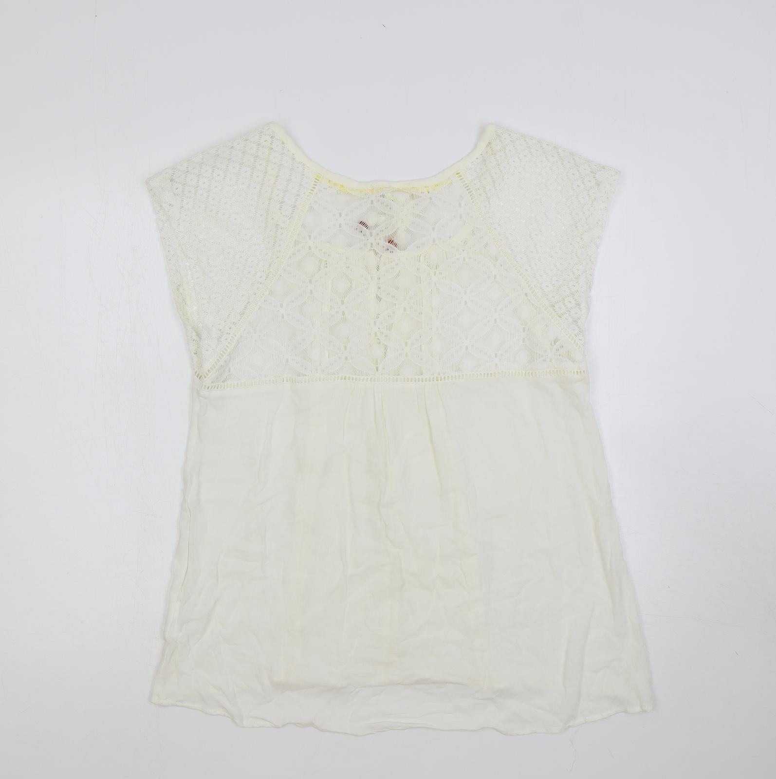 Womens White Polyester Basic Blouse Size XL Boat Neck - Tasseled
