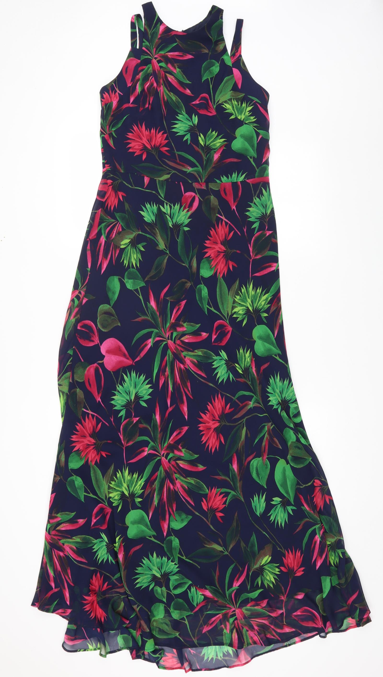 Womens Multicoloured Geometric Polyester Maxi Size 4 Round Neck Zip