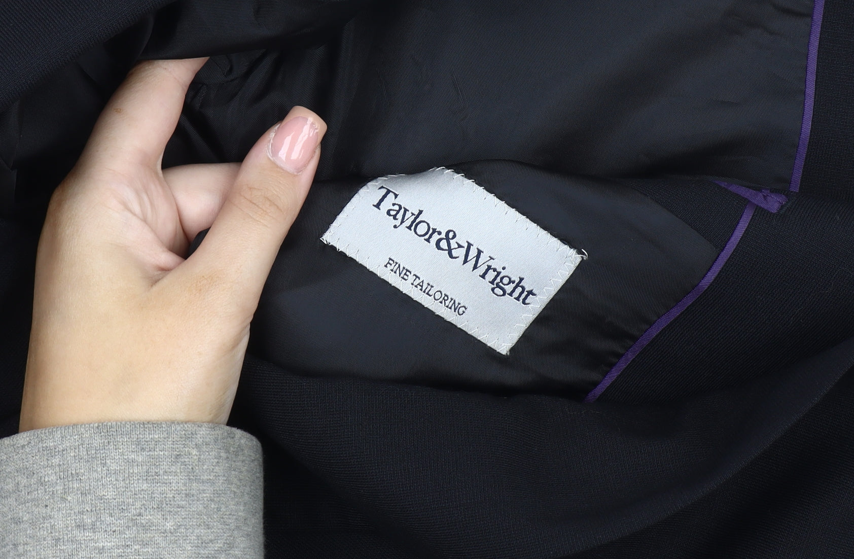 Introducing the exquisite Taylor & Wright Men's Blazer, a perfect blend of sophistication and style for the modern gentleman. Crafted in a classic black hue, this single-breasted blazer embodies timeless elegance, making it a versatile addition to any wardrobe. With a size of 42, it fits comfortably and is ideal for formal occasions, from business meetings to elegant evening events.Constructed from a quality blend of materials, the blazer features 60% Wool, 37% Polyester, and 3% Elastane, ensuring not only a luxurious feel but also durability and subtle stretch for ease of movement. The notch lapel design adds a touch of classic refinement, while the three-button closure offers a structured silhouette. This long-length blazer also includes a single-vented back for a tailored fit that moves with you.Inside, the blazer is lined with smooth polyester, offering comfort and a polished finish. The four-button detailing on the sleeves enhances the stylish appeal, making it a standout piece in any formal attire collection. Dry clean only, this blazer is easy to maintain, retaining its crisp look wear after wear.Whether paired with matching trousers for a complete suit or worn over a smart-casual outfit, the Taylor & Wright blazer is a stylish choice that promises to impress. In excellent condition, this blazer is lightly used, ensuring you receive a piece that looks and feels nearly new. Elevate your wardrobe with this classic piece - perfect for creating a sophisticated, confident appearance.