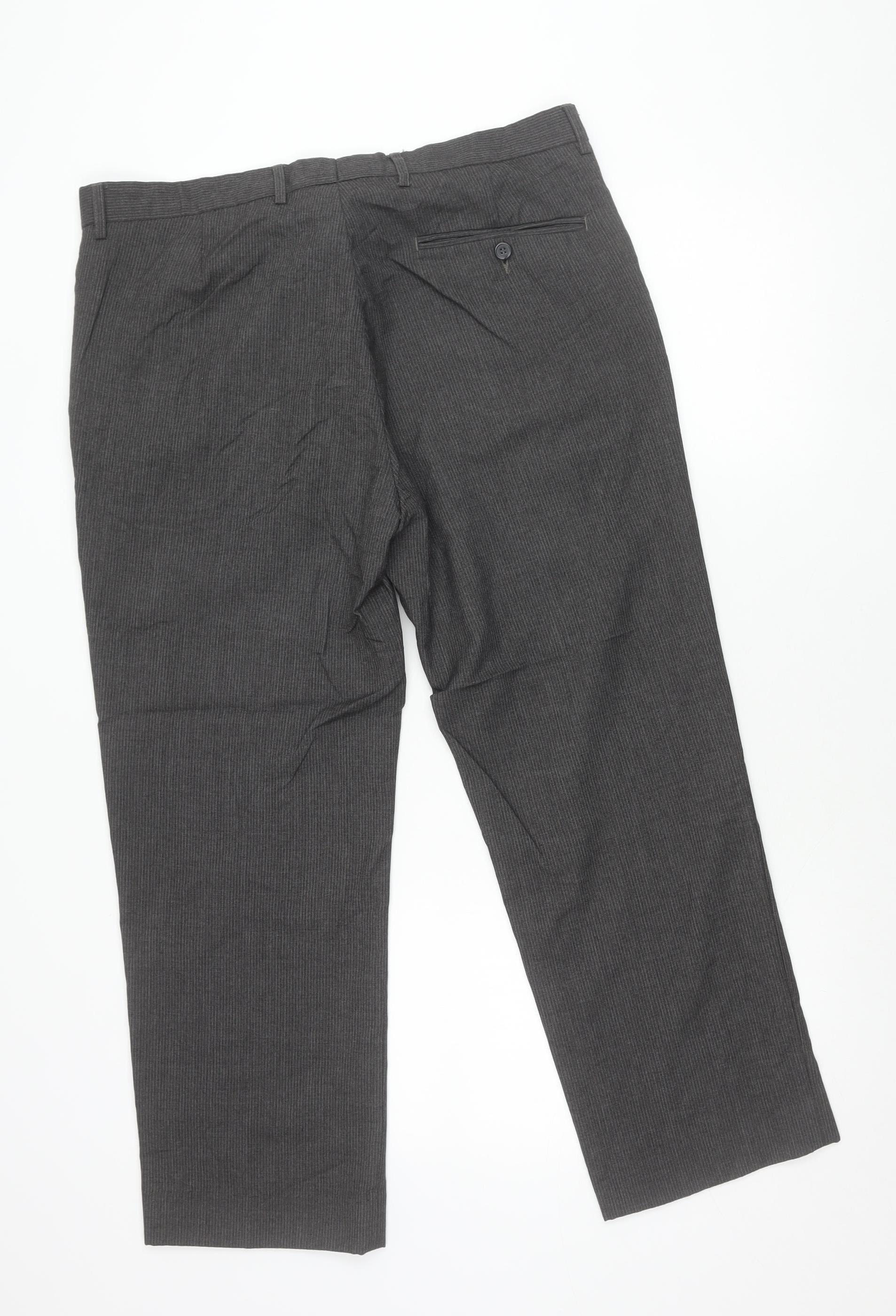 Step out in timeless sophistication with these Taylor & Wright women's dress trousers, designed for effortless style and all-day comfort. Crafted from a high-quality blend of 64% polyester and 36% viscose, the trousers offer a structured, tailored appearance while maintaining a soft and comfortable feel. The fabric is durable yet breathable, making it an excellent option for year-round wear whether in autumn, spring, or winter.These trousers feature a versatile mid-rise fit with a straight leg cut, providing a polished silhouette that complements a variety of body shapes. The grey shade makes them an adaptable wardrobe essential, easily paired with blouses, blazers, or knitwear for work, business meetings, or more formal events. Designed with practicality in mind, they include functional pockets and a secure button-and-zip fastening. A flat front detail further enhances their smart and professional aesthetic.The minimalist design works well for multiple occasions, from business to formal gatherings, while still maintaining the comfort required for daily workwear. The trousers’ machine washable care instructions make them easy to maintain, saving you time and hassle.Condition is rated as very good, showing gentle signs of previous wear including light creasing but no major flaws. These trousers have been well cared for and remain in excellent wearable condition. Given their quality tailoring and versatile design, they provide fantastic value and timeless style.Perfect for anyone seeking a sleek office-ready look or a smart addition to their formal wardrobe, these Taylor & Wright trousers are an essential piece that can be styled up or down with ease. Add these classic trousers to your collection today and enjoy the balance of elegance, practicality, and durability.