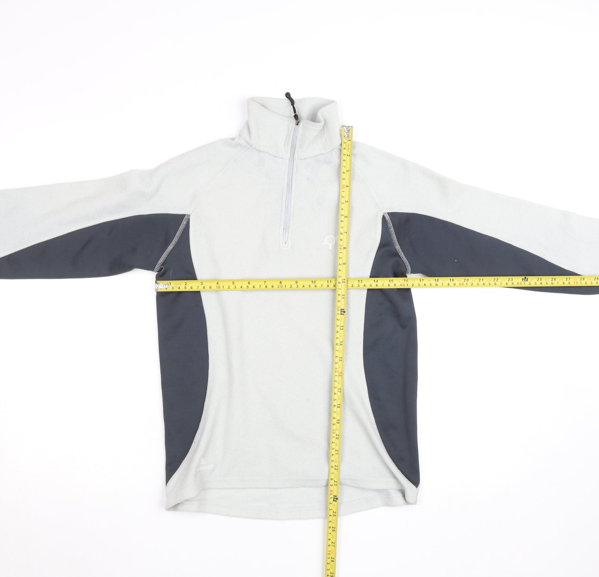 Stay warm and comfortable during outdoor activities with this women’s Technicals fleece pullover, designed for reliable performance in cooler weather. Crafted from soft 100% polyester fleece, it offers a lightweight yet cosy feel, ideal for layering during hiking, walking, or casual outings. The light grey body contrasted with darker grey panels provides a subtle sporty aesthetic suitable for everyday wear or active pursuits. With a practical 1/4 zip front, this top allows easy ventilation and adjustable warmth, while the high neck helps block chilly winds. The raglan sleeve design ensures freedom of movement, making it perfect for walking trails, running errands, or simply enjoying the outdoors. This fleece also features breathable fabric that wicks moisture and keeps you comfortable throughout the day. Designed in a regular fit and UK size 10, it complements an active lifestyle without compromising on style or practicality. The durable construction ensures it maintains its shape and softness after multiple washes, and it’s conveniently machine washable for easy care. Ideal for autumn and winter months, this fleece pullover delivers both performance and comfort, making it a dependable addition to any wardrobe. The versatile design works well as a casual everyday top or as an insulating mid-layer under a jacket during outdoor adventures. This item is in very good pre-owned condition with minimal signs of wear, ready to provide many more cosy days ahead. Perfect for women seeking functional activewear that doesn’t sacrifice comfort or style. Ready to tackle the outdoors or relax at home, this Technicals fleece is a great all-round choice for cool-weather layering.
