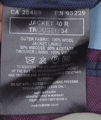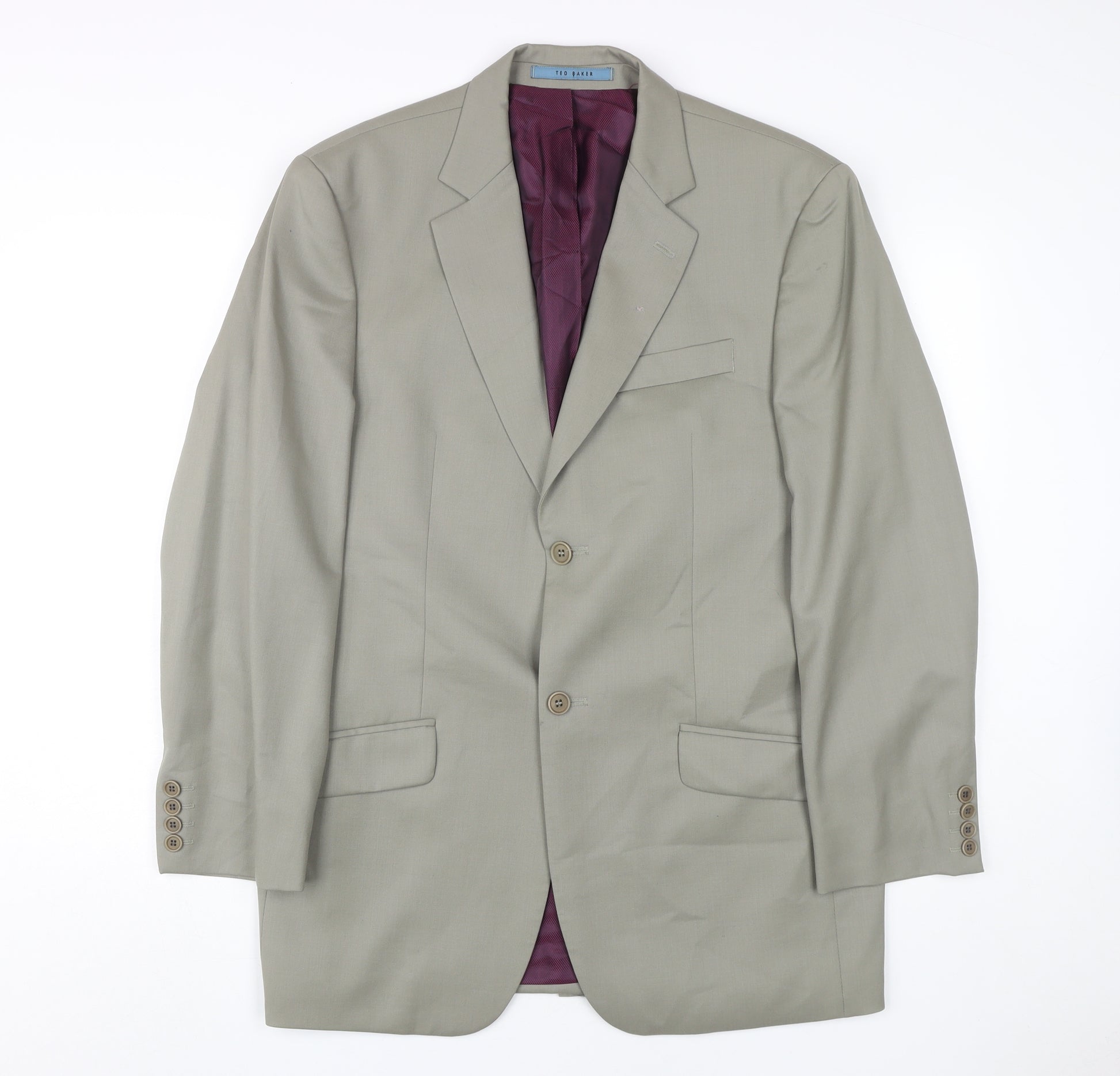 This Ted Baker men's blazer in a sophisticated beige shade is a perfect addition to your wardrobe. Expertly tailored from 100% wool, this blazer offers a luxurious feel and superior comfort, making it ideal for formal occasions or business meetings. The regular fit ensures a timeless silhouette, flattering a range of body types.Crafted with Ted Baker's distinct attention to detail, this blazer features a single-breasted cut and two-button front closure, enhancing its classic allure. The interior is lined with a high-quality blend of viscose and acetate, providing a smooth texture and additional comfort. The jacket's size 40 chest and regular length make it easy to pair with various outfits, ensuring versatility and ease of wear.Whether preparing for a formal event or adding a layer of sophistication to a casual ensemble, this Ted Baker blazer captures elegance and modern style. It pairs effortlessly with trousers or jeans, transitioning easily from day to night, while its neutral beige tone complements various colours and patterns, making it an invaluable staple in any stylish man's closet.Meticulously maintained, this blazer remains in excellent condition, ready to elevate your fashion game. Dry clean only to preserve its refined look and longevity. Priced competitively, this Ted Baker blazer represents outstanding value for those seeking quality and style.
