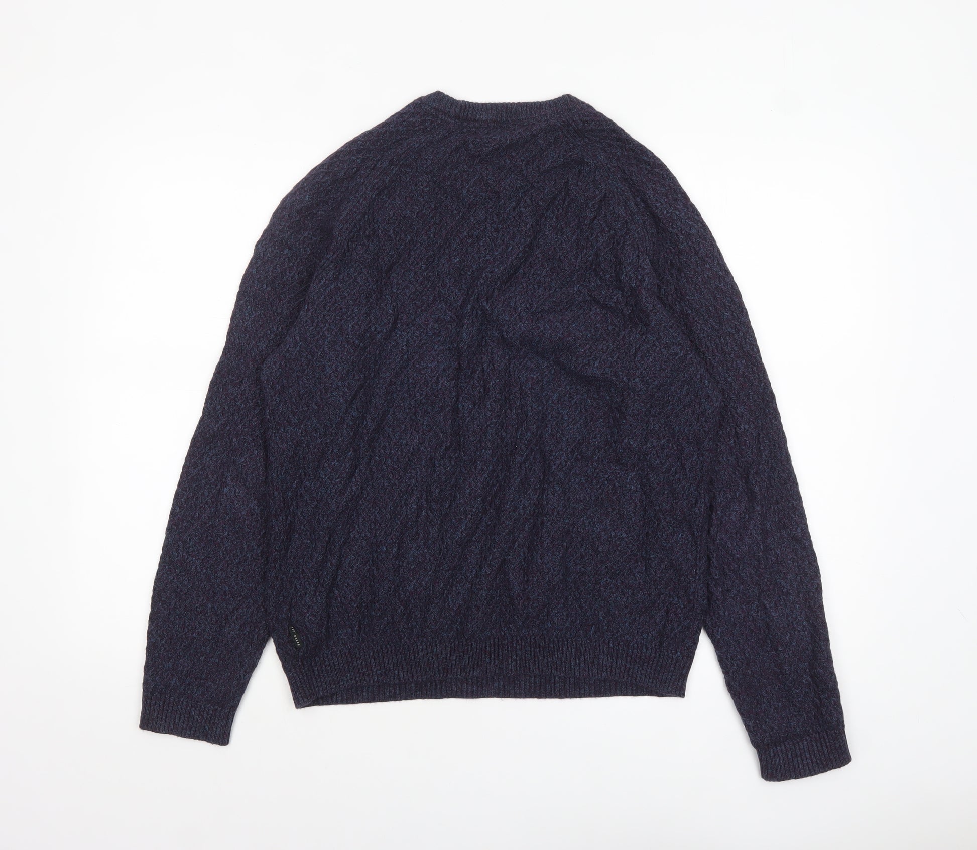 Men's Blue Crew Neck Wool Blend Cable-Knit Jumper M