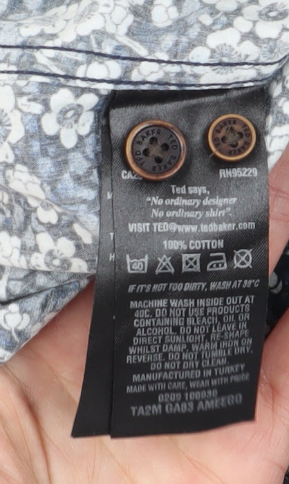 Discover the elegance of the Ted Baker Men's Floral Blue Shirt, a stylish addition for your wardrobe. Crafted with the finest 100% cotton, this shirt ensures comfort and breathability, making it perfect for spring and summer seasons. Its long sleeves and button-up closure provide a classic look, while the intricate floral pattern adds a touch of sophistication. Ideal for casual occasions, this shirt reflects Ted Baker's commitment to quality and design. With a regular size fit, it offers an ideal silhouette for fashion-forward individuals. Machine washable for easy care, this new condition shirt promises to be a reliable staple in your collection.