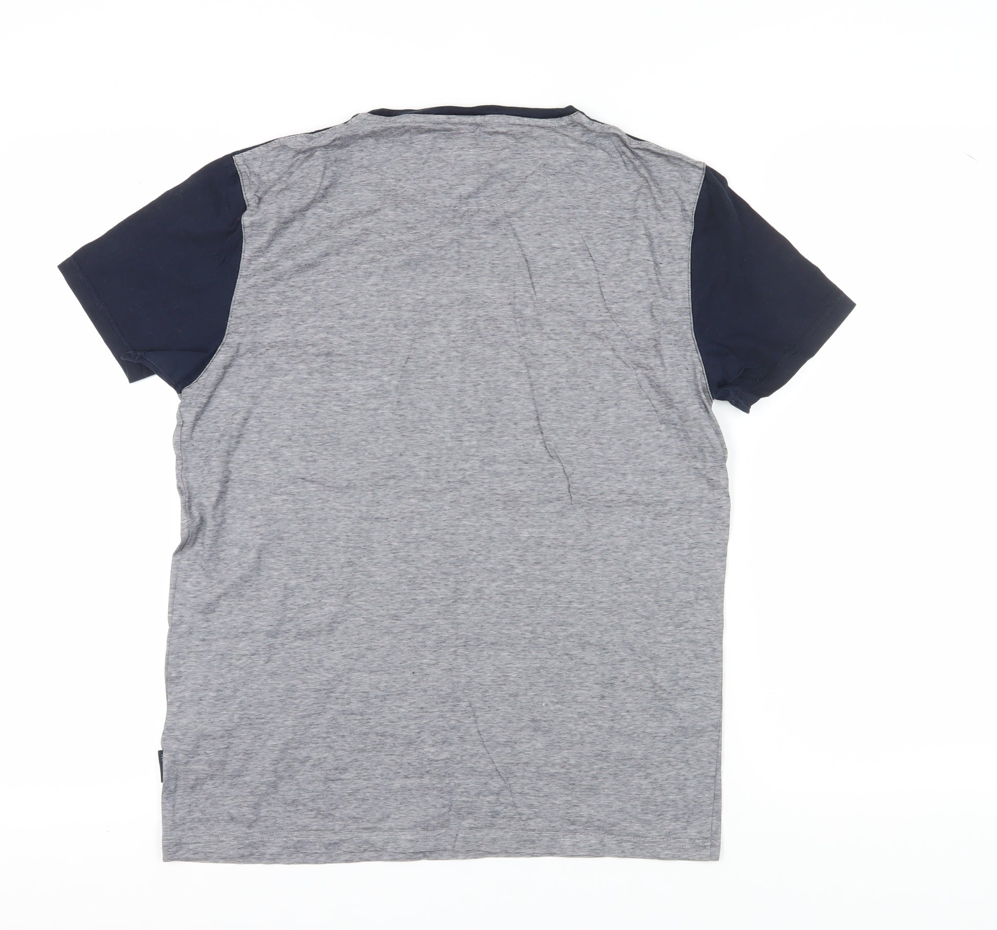 Step out in style with this Ted Baker Men's T-Shirt, crafted for those who appreciate a blend of comfort and fashion. Made entirely from soft, high-quality cotton, this T-shirt offers all-day comfort while maintaining a sleek, modern appearance. Its striking grey and navy colourblock design adds a touch of sophistication to your casual wardrobe, ensuring you look sharp whether you're off to a brunch or lounging at home. Featuring a classic crew neckline and short sleeves, this T-shirt is a testament to understated elegance and versatility. The regular fit ensures a comfortable wear without compromising on style. Pair it with your favourite jeans or shorts for a laid-back yet chic look that speaks volumes without shouting. Whether you're in the midst of spring's freshness or winter's chill, this tee stands the test of time as an all-season staple. Easy to care for, this garment can be machine washed, making it as practical as it is stylish. Don't miss out on the chance to elevate your casual attire with this essential Ted Baker piece.