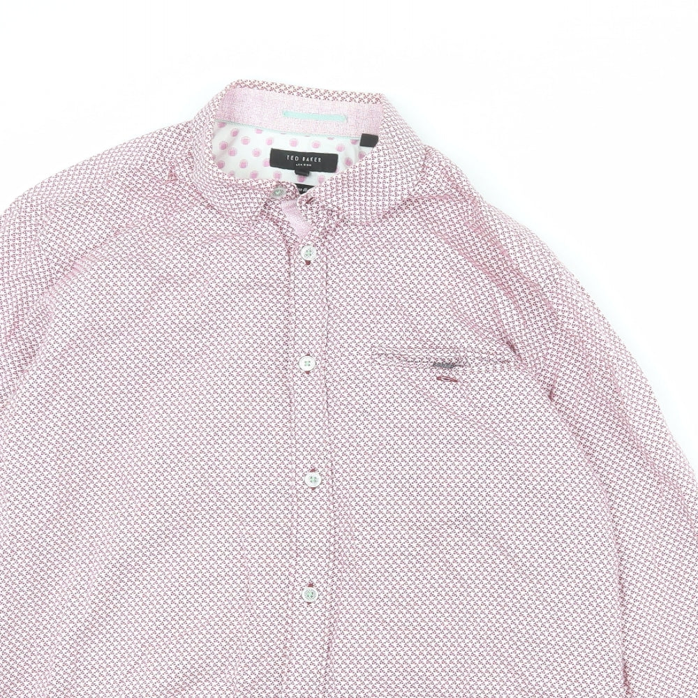 Mens Purple Geometric Cotton Button-Up Size L Collared Button - 4 = L UK