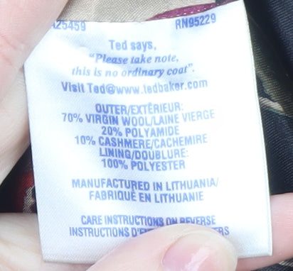 Step into timeless elegance with this stunning black Ted Baker women’s mid-length coat, expertly tailored to provide both sophistication and comfort. Crafted from a luxurious blend of 70% virgin wool, 20% polyamide, and 10% cashmere, this coat offers exceptional warmth and softness, perfect for chilly autumn and winter days. The smooth 100% polyester floral lining adds a subtle pop of colour and a touch of Ted Baker’s signature flair, delivering a refined look inside and out. The classic silhouette, complemented by structured seams and a flattering fit, ensures this coat drapes beautifully over your figure. Featuring a wide collar that can be styled up or down, a single-breasted button front, and practical side pockets, it’s designed for both elegance and functionality. The mid-length cut makes it a versatile piece—ideal for pairing with workwear, business outfits, or smart-casual ensembles. This coat embodies the polished aesthetic Ted Baker is known for, making it the perfect addition to any modern wardrobe. Whether you’re heading to the office, out to dinner, or attending a winter event, this exquisite piece promises to elevate your look with understated sophistication. In excellent pre-loved condition with only minor signs of wear, this coat is ready to make a stylish impression for seasons to come.