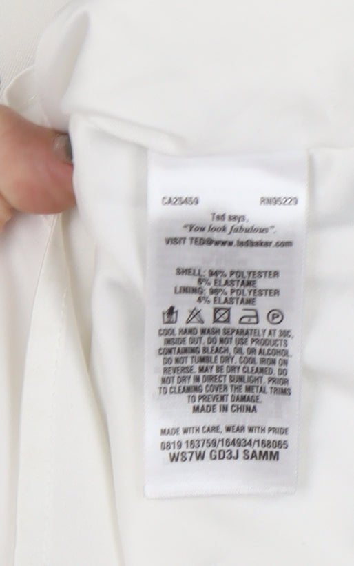 Elevate your wardrobe with this enchanting Ted Baker Fit & Flare Dress, perfect for any party or cocktail event. Featuring a vibrant multicoloured floral pattern, this sleeveless dress exudes a fresh and lively spirit, ideal for spring and summer occasions. Crafted from quality polyester and elastane blend, the dress ensures a comfortable fit that flatters your figure. Its halter neckline and strappy sleeves add a modern touch, while the easy zip closure adds practicality. With a short length, it brings elegance and grace, making it an effortlessly stylish choice. The dress is lined for added luxury, ensuring you feel as good as you look. Pair it with your favourite heels and accessories to complete your chic ensemble. Don't miss this chance to add a Ted Baker classic to your collection.