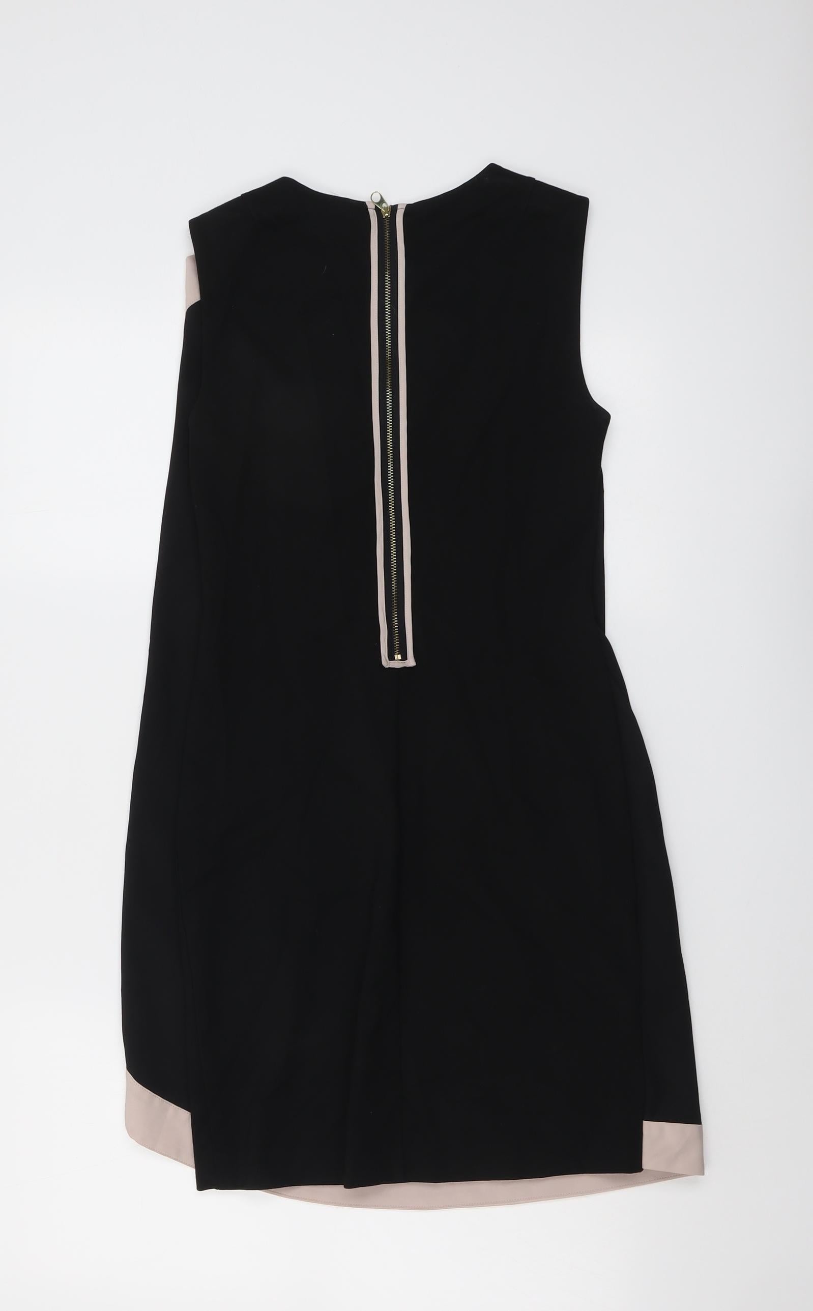 Womens Black Colourblock Viscose Shift Size 6 Round Neck Zip