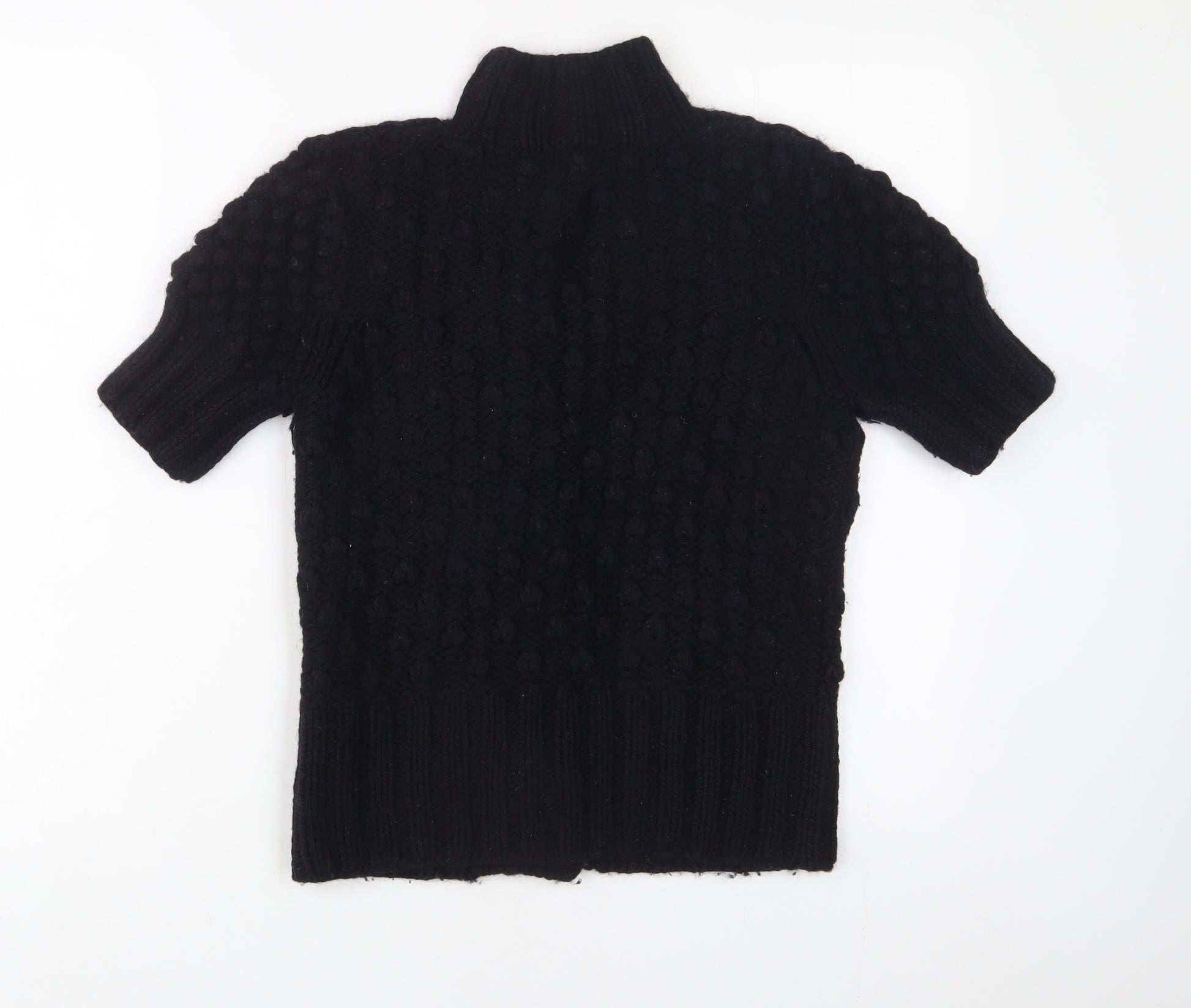 Womens Black High Neck Wool Cardigan Jumper Size M
