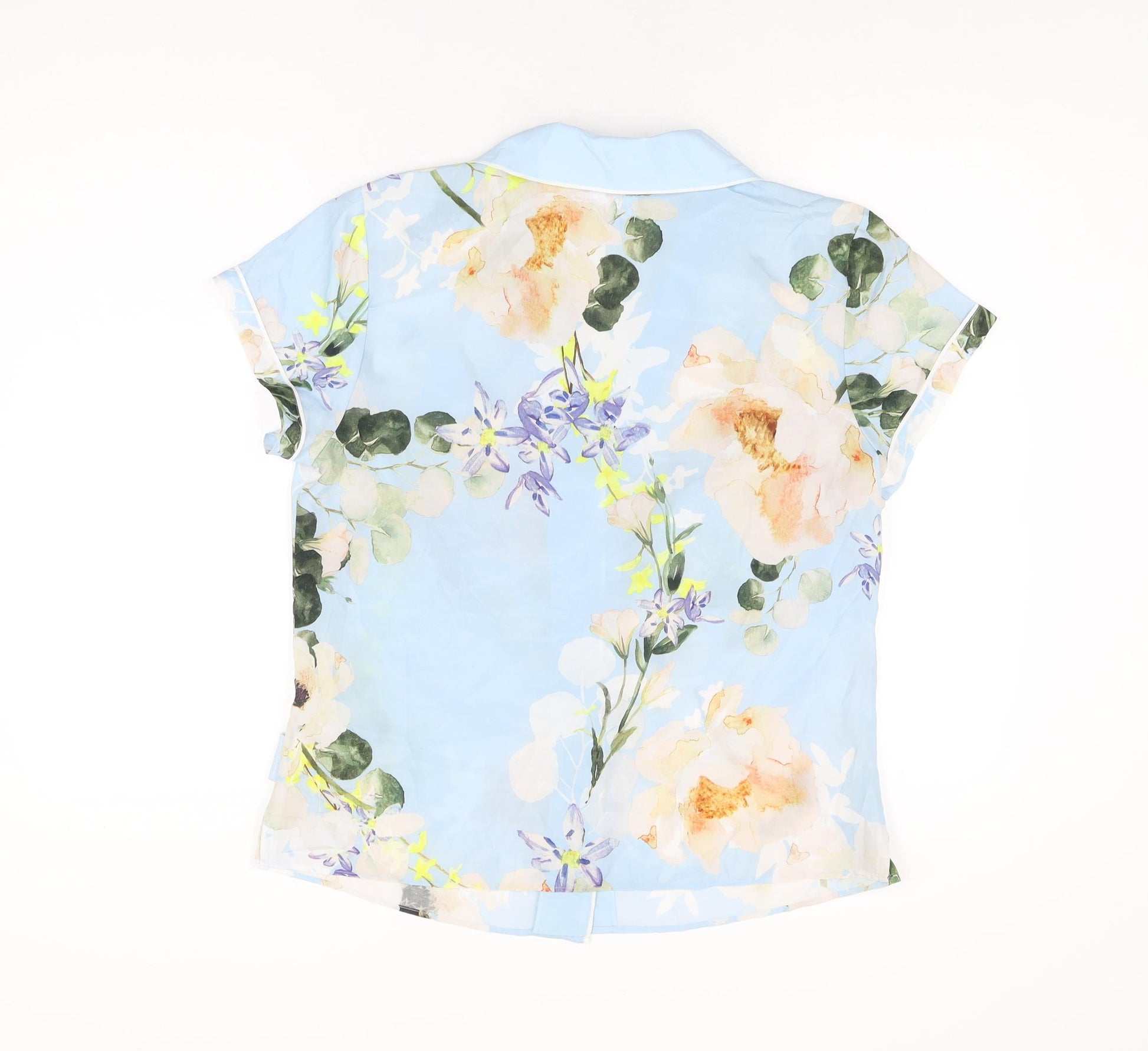 Womens Blue Floral Polyester Top Pyjama Top Size 12 Button